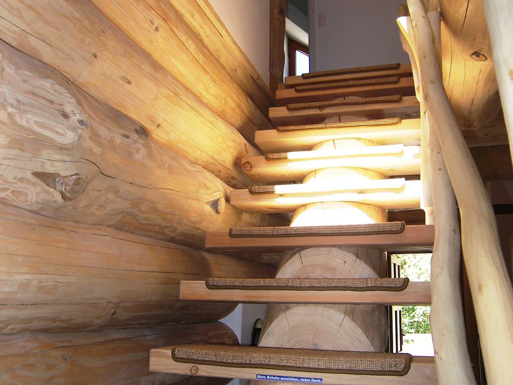 Auf einem naturnahen, parkähnlichen 1.000 m² großen Grundstück mit Saunahaus, Carport , Grillplatz und viel Platz um die Seele baumeln zu lassen, befindet sich das Naturstammhaus aus Douglasienholz mit 2 Wohnungen, die einzeln aber auch komplett als Ferienhaus gemietet werden können. Große Holzterrassen um das Haus laden zum Entspannen und Verweilen ein.