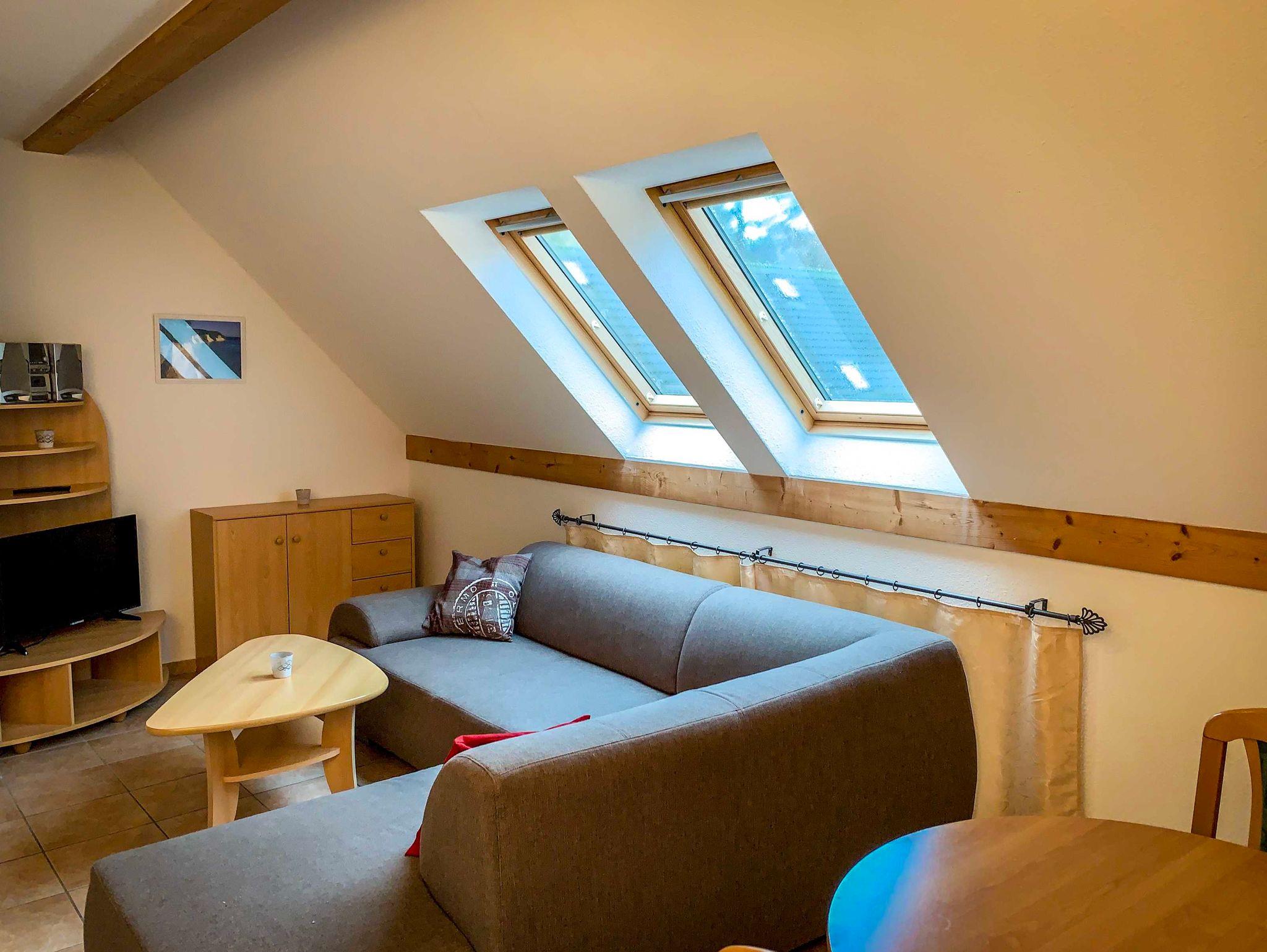 Die Wohnung empfehlen wir für 4 Personen. Im oberen Schlafbereich ist noch Platz für 2 Babybetten.