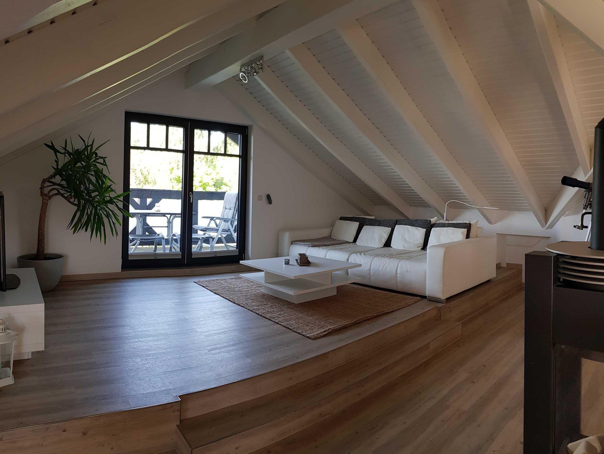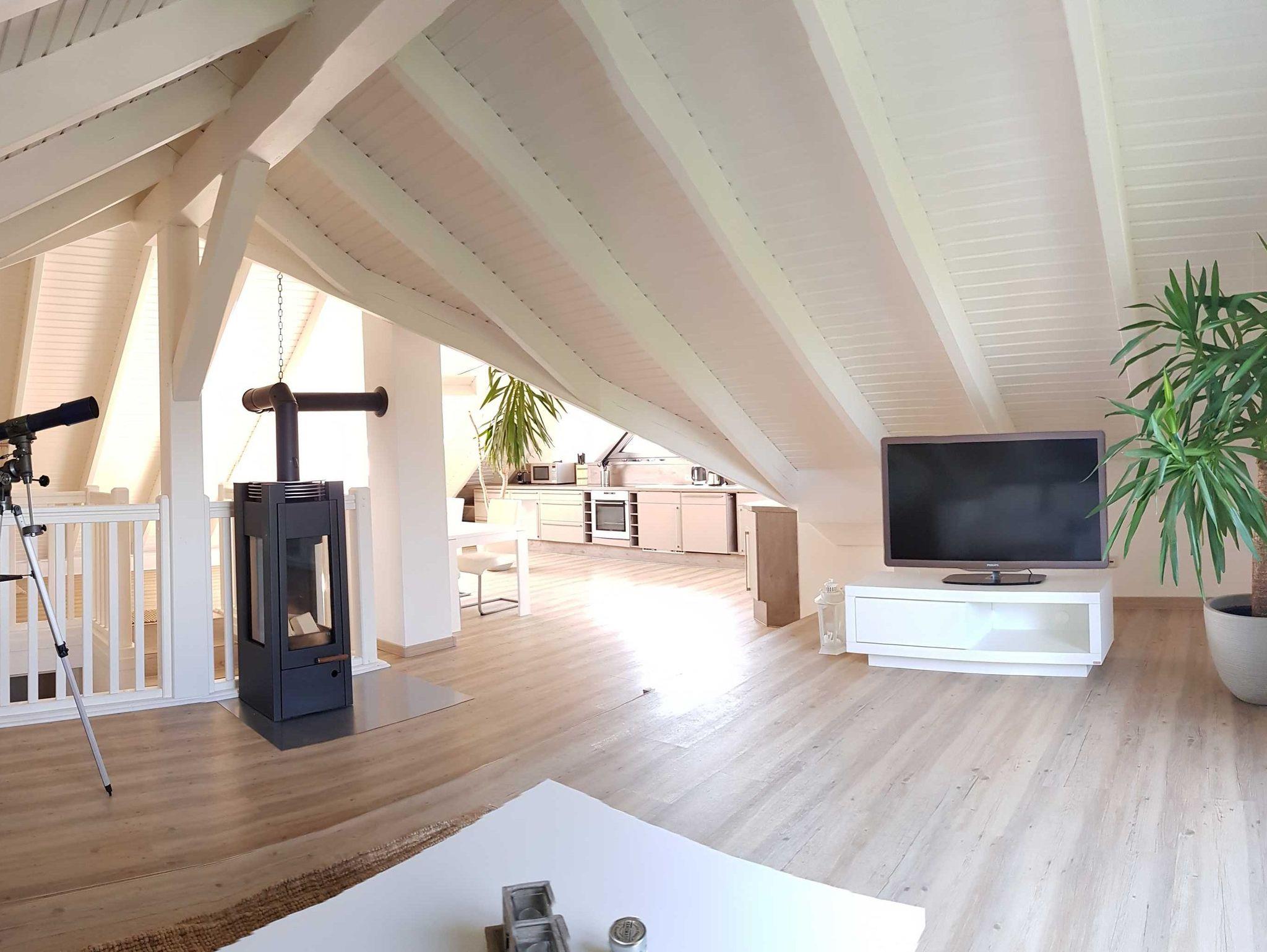 Besuchen Sie uns Ferienwohnungen Urlaubslust Trassenheide. Die 2 Raum Wohnung ist ca. 100 m² groß wurde 2014 fertiggestellt und befindet sich im Dachgeschoss. Sie hat einen großen kombinierten Wohn-/Essbereich (amerikanische Küche) mit Couch sowie eine hochwertige und voll ausgestattete Küche mit Esstisch für 4 Personen.Für gemütliche Abende steht Ihnen ein Kamin mit 3 Sichtfenstern zur Verfügung. Es gibt ein Schlafzimmer mit einem Doppelbet und großem Kleiderschrank. Die Couch im Wohnbereich ist für 2 Aufbettungen nutzbar. In der Küche finden Sie einen Induktionsherd mit Backofen, Mikrowelle, Toaster, Kaffeemaschine, Wasserkocher, Kühlschrank und Spülmaschine. Das Bad/WC ist mit einer großen Dusche, einem Fön und Handtuchhaltern ausgestattet.