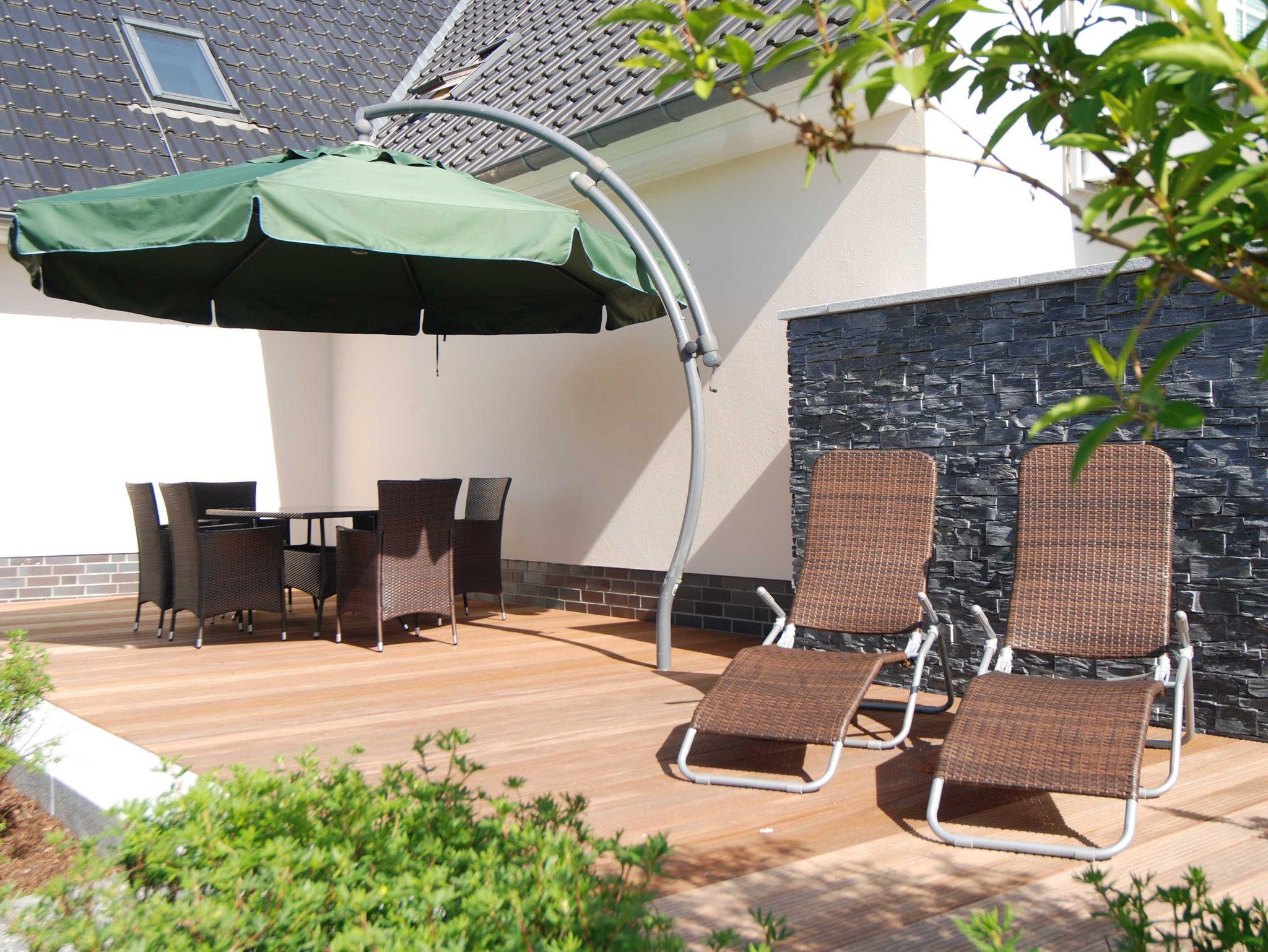 Die modern eigerichtete Ferienwohnung verfügt über ein Wohnzimmer mit Küchenzeile und Essplatz, Couch, LED-TV, HiFi-Anlage, Telefon und einem kostenlosen WLAN-Zugang (VDSL100). Ein Schlafzimmer mit Doppelbett und zweitem LED-TV sowie ein Bad mit Dusche und WC ergänzen die Wochnung. Im Nebenraum steht eine Waschmaschine und ein Geschirrspüler zur Verfügung.. Am Ferienhaus befindet sich eine Terasse, Liegestühlen und großem Sonnenschirm.