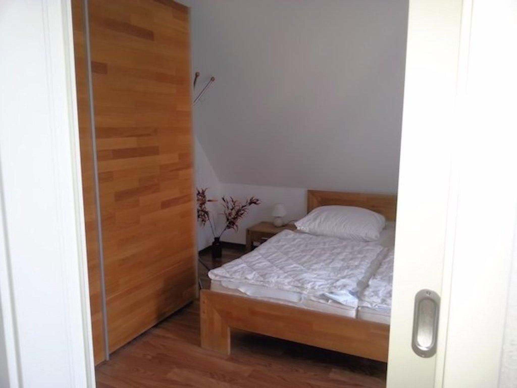 Ein Schlafzimmer mit Doppelbett befindet sich im unteren Bereich der Wohnung. Das zweite Schlafzimmer - ein Galerieschlafzimmer mit 2 Einzelbetten - im oberen Bereich. Dieser Bereich ist durch eine Raumspartreppe erreichbar.