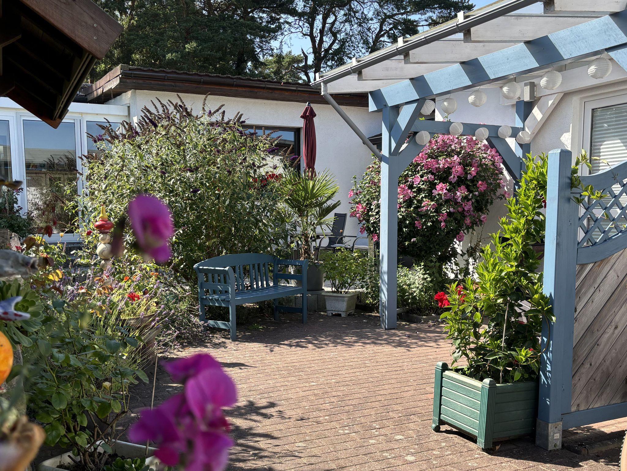 Der Garten steht zur gemeinsamen Nutzung beider Bungalows bereit und lädt zum Entspannen, Sonnenbaden oder Spielen ein. Zusätzlich verfügen beide Objekte über eine eigene Terrasse. Der Strand ist nur 1,8 km entfernt, sodass Sie die Ostsee bequem zu Fuß oder mit dem Fahrrad erreichen können.