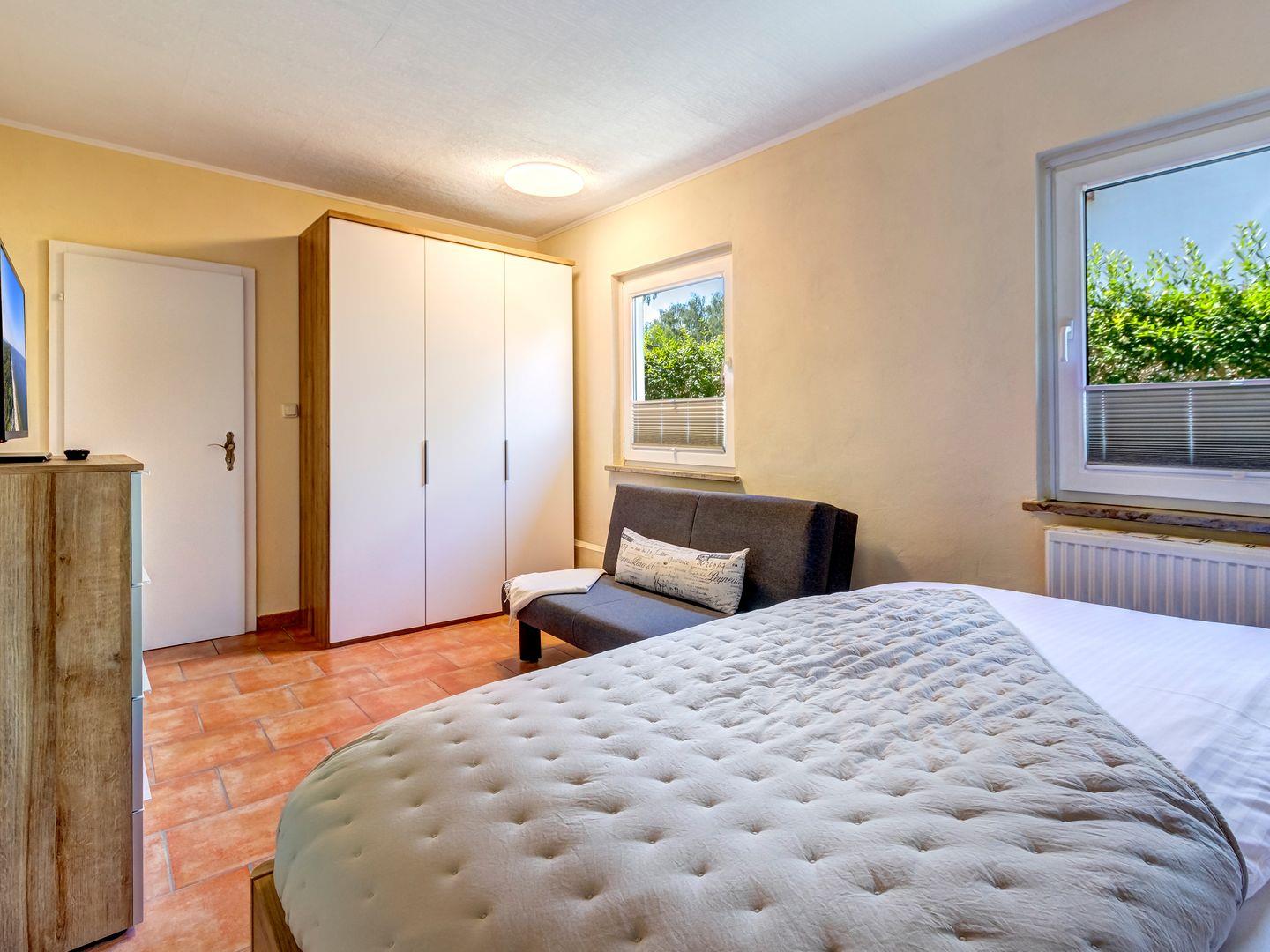 Der geräumige und funktional eingerichtete Wohn- und Schlafbereich schafft eine gemütliche Atmosphäre, in der Sie sich wie zu Hause fühlen können. Eine separate Küche und ein Badezimmer stehen ebenfalls für Ihren Komfort bereit. Schlafmöglichkeiten in der Wohnung umfassen ein separates Schlafzimmer mit einem Doppelbett und einem Schlafsofa sowie ein zweites Doppelbett im Wohnbereich.