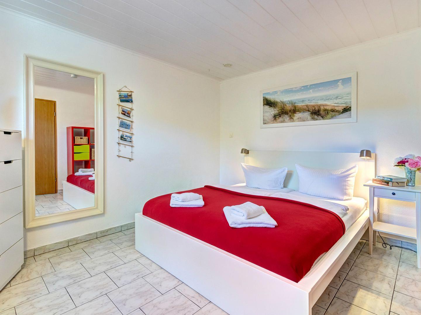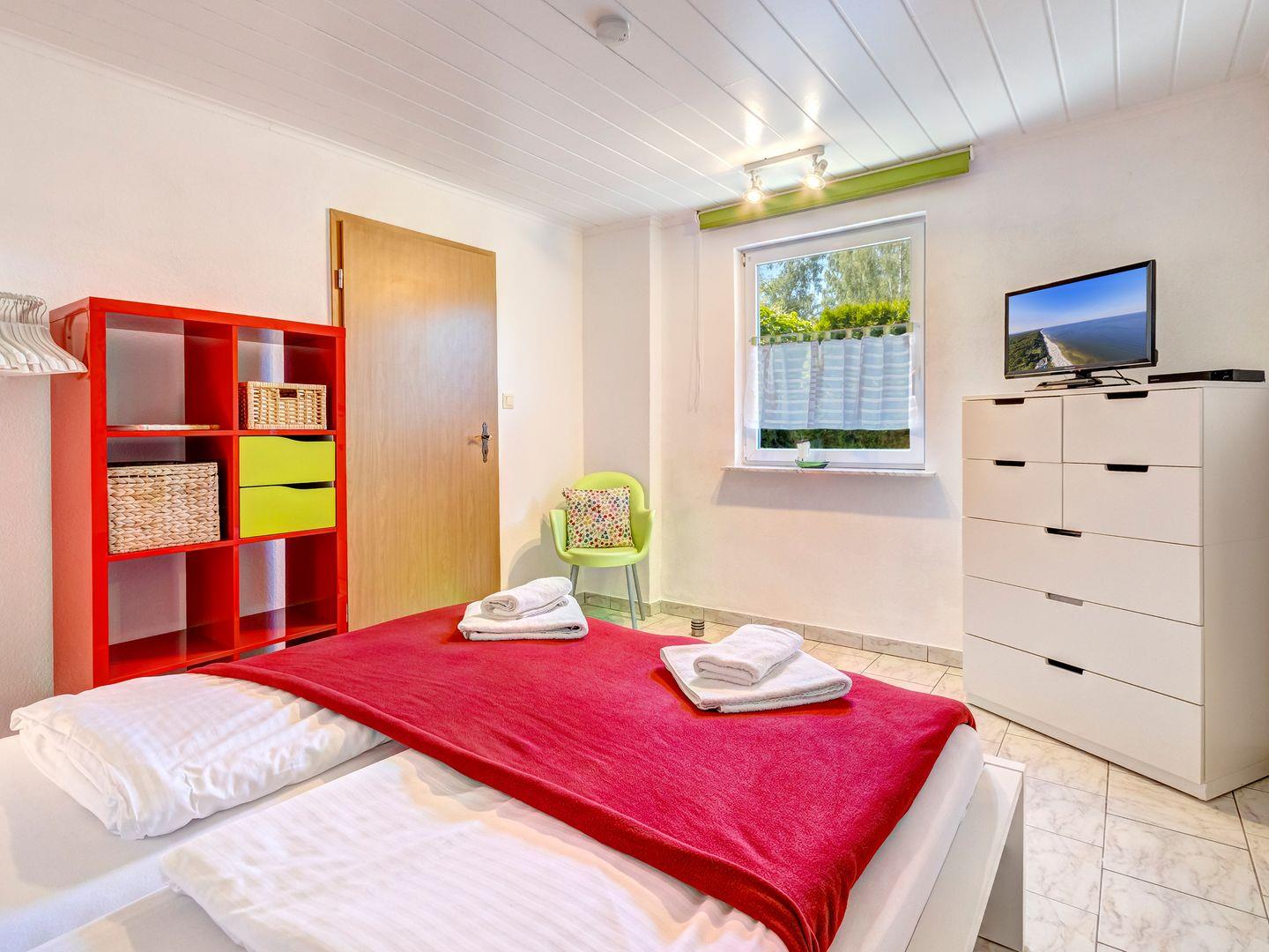 In der Ferienwohnung erwartet Sie ein vollwertiger Schlafraum mit einem komfortablen Doppelbett sowie einem Schlafsofa für erholsame Nächte. Der gemütliche Wohnbereich mit einer gut ausgestatteten Küchenzeile und einem Essbereich bietet Platz für bis zu 4 Personen.