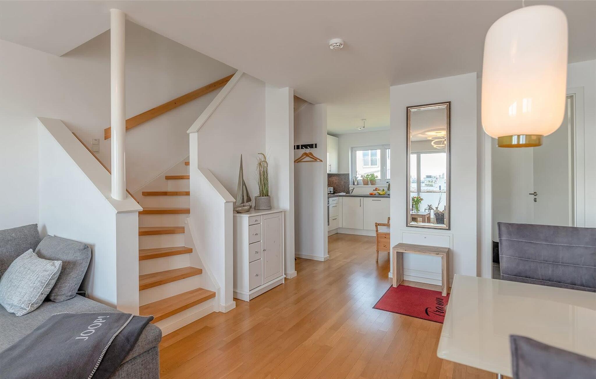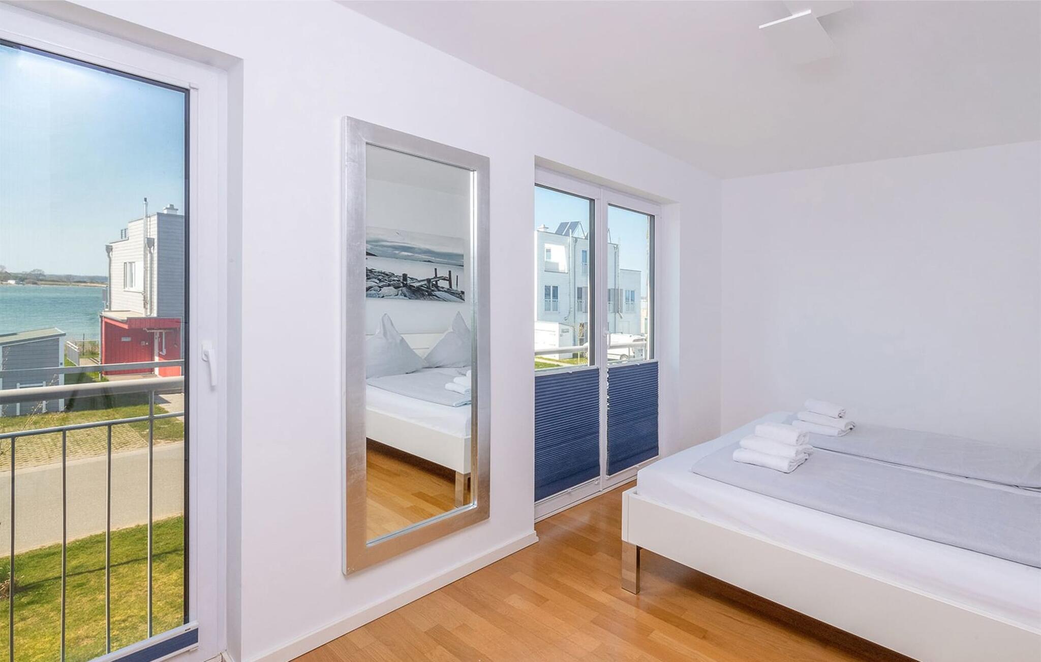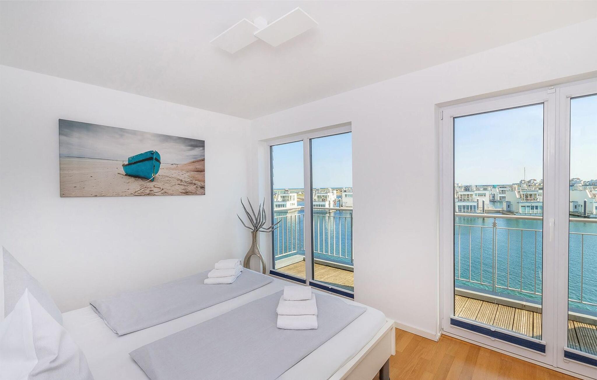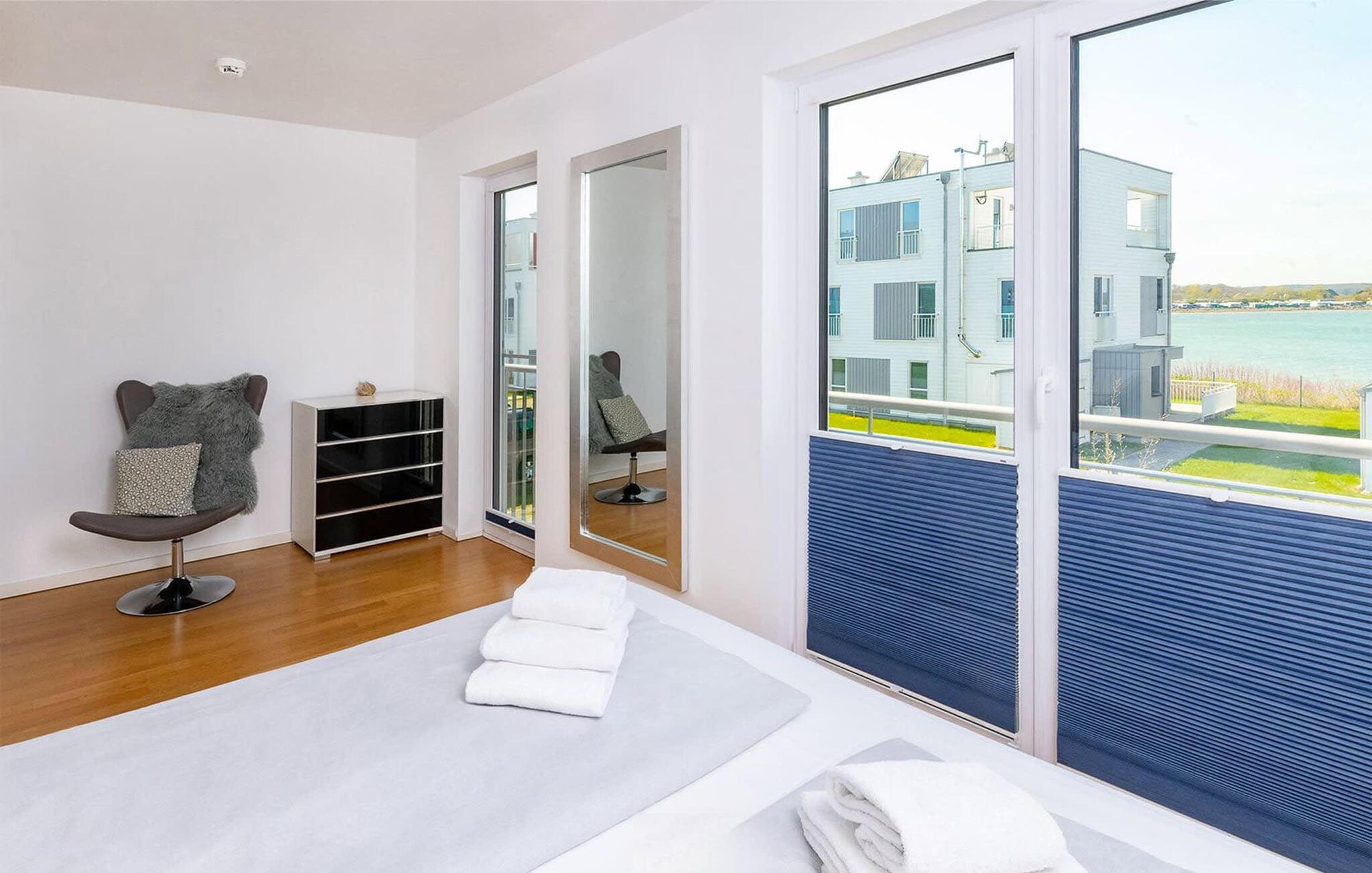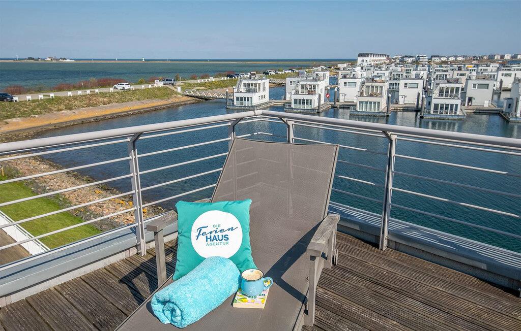 Der Höhepunkt ist die 25 m² große Dachterrasse, die einen Rundum-Wasserblick auf die Schlei, ihre Mündung in die Ostsee und den Hafen des Resorts bietet. Hier kann die Sonne in vollen Zügen genossen werden.