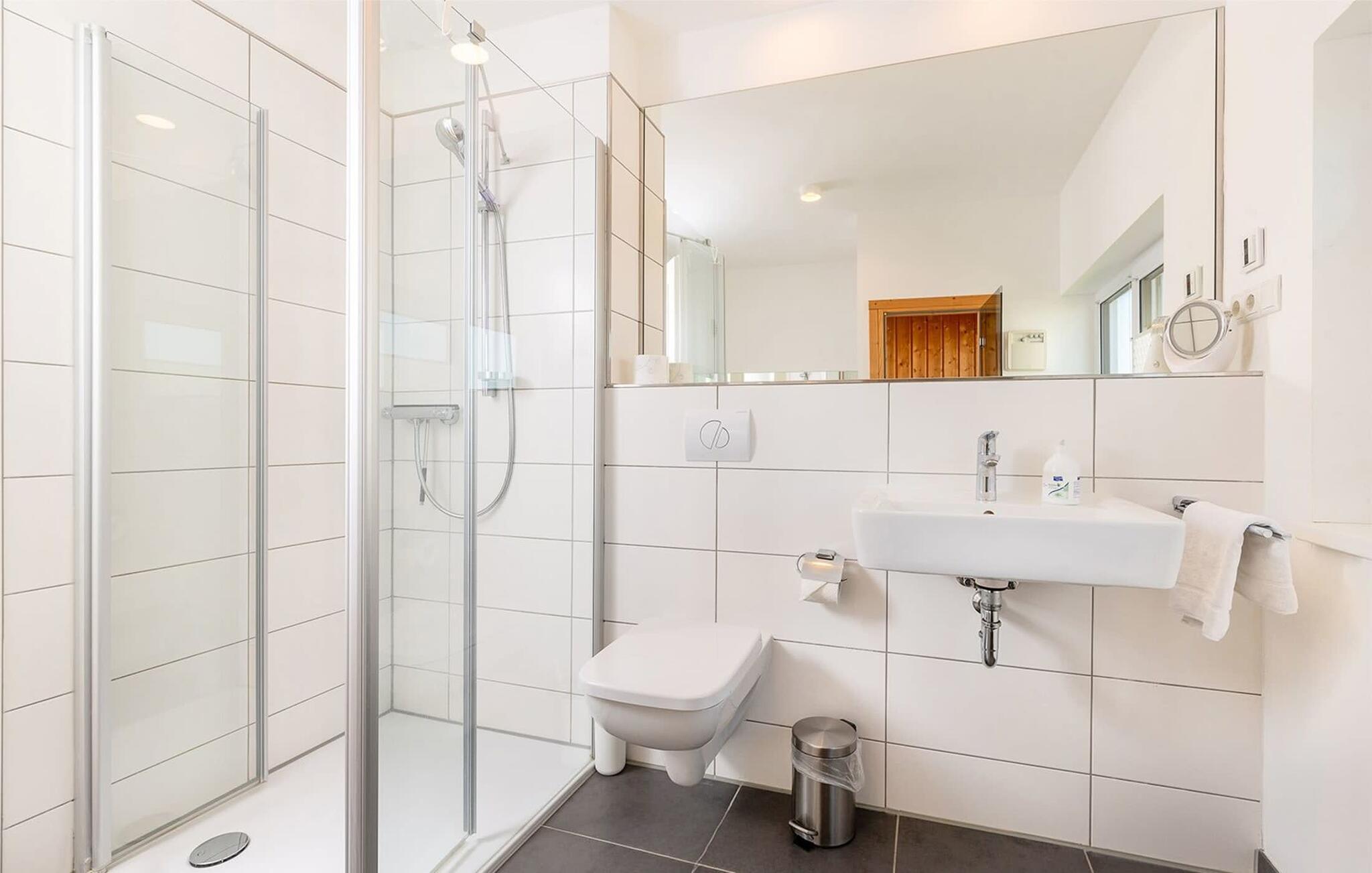 - WC mit warmem und kaltem Wasser, Dusche und Badewanne