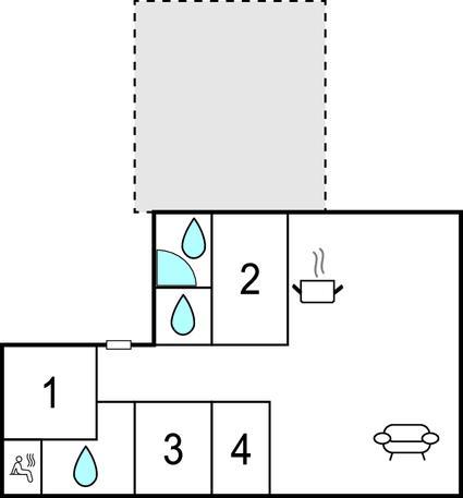 Badezimmer (nr. 3) - WC. Warmes und kaltes Wasser. Dusche