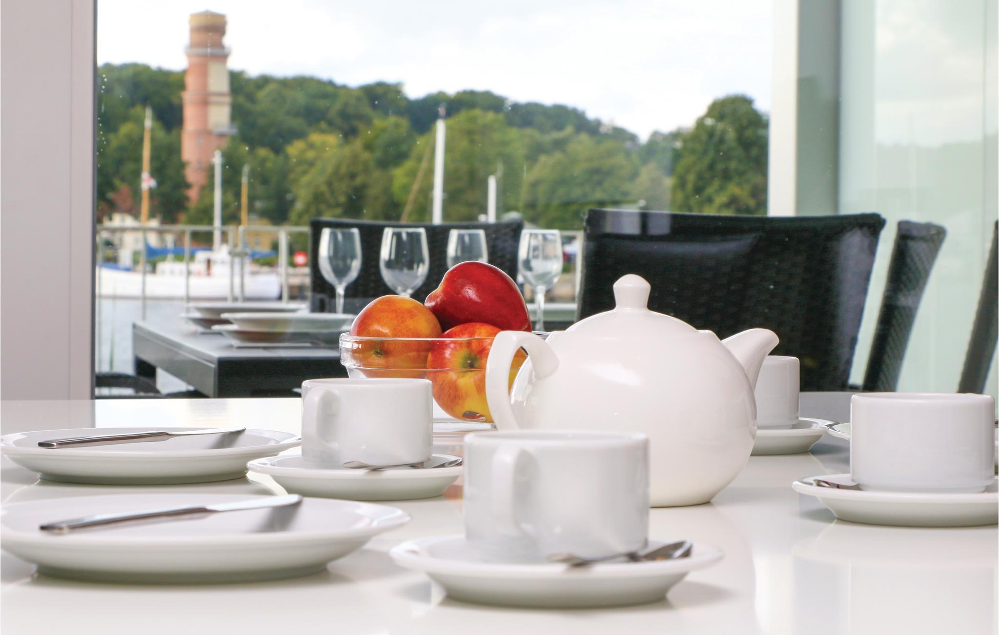 Genießen Sie den Ausblick über den Segelhafen, die Travemündung und die Ostsee. Nicht nur von der großen Terrasse aus, sondern auch durch die zahlreichen Panoramafenster fällt der Blick auf das beeindruckende Museumsschiff „Passat“ und die in fast greifbarer Nähe vorübergleitenden großen Skandinavienfähren - ein einmaliger Panoramablick!
