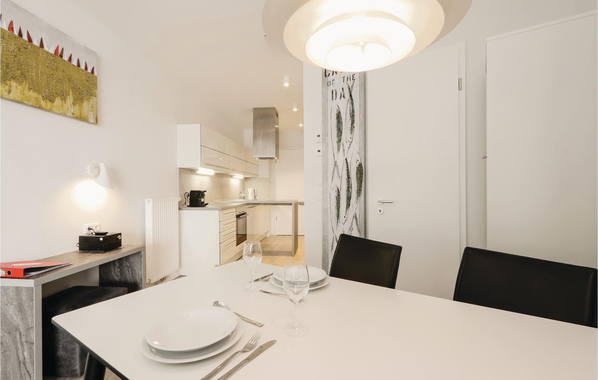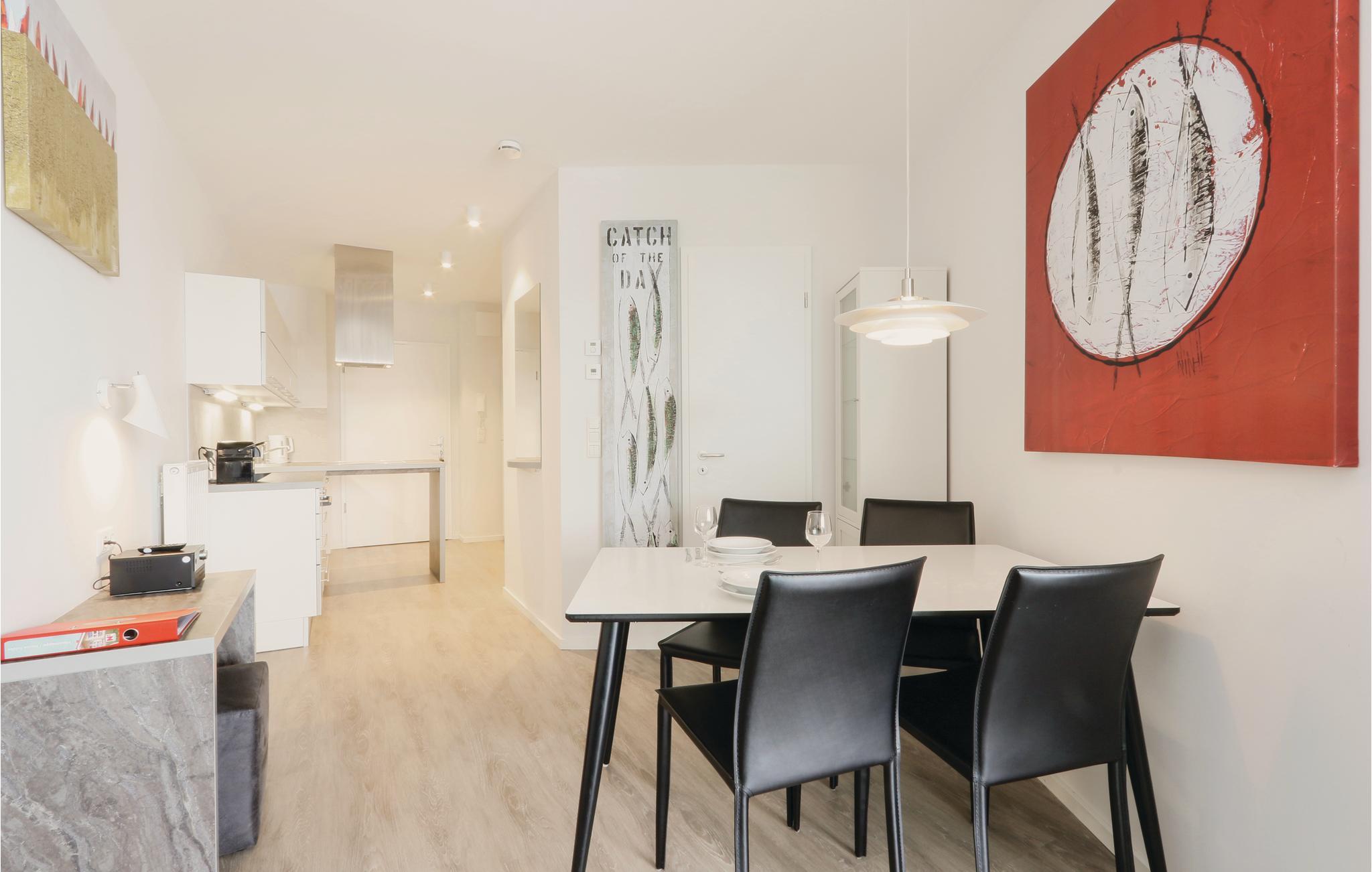 Die Wohnung ist stilvoll, hochwertig und modern eingerichtet. Ein besonderes Highlight ist das Bad, Ihr persönlicher kleiner Wellnessbereich mit Sauna und Dampfbad mit integrierter Regendusche. Das Wohlfühlprogramm setzt sich im Wohnbereich fort, denn die flackernden Flammen des Bioethanolkamins tauchen den Raum in ein besonders gemütliches Licht. Das Sofa lässt sich mit wenigen Handgriffen in zwei bequeme Schlafmöglichkeiten umwandeln. Natürlich ist die Ferienwohnung an der BeachBay auch mit einem modernen Entertainment-System samt Blu-Ray, Musikanlage und TV ausgestattet. In der Küche finden Kaffeeliebhaber eine Nespresso-Maschine (Kapseln bitte selbst mitbringen), sowie Thermoskanne und Handfilter zum Selbstbrühen, falls Sie doch den klassischen Filterkaffee bevorzugen.