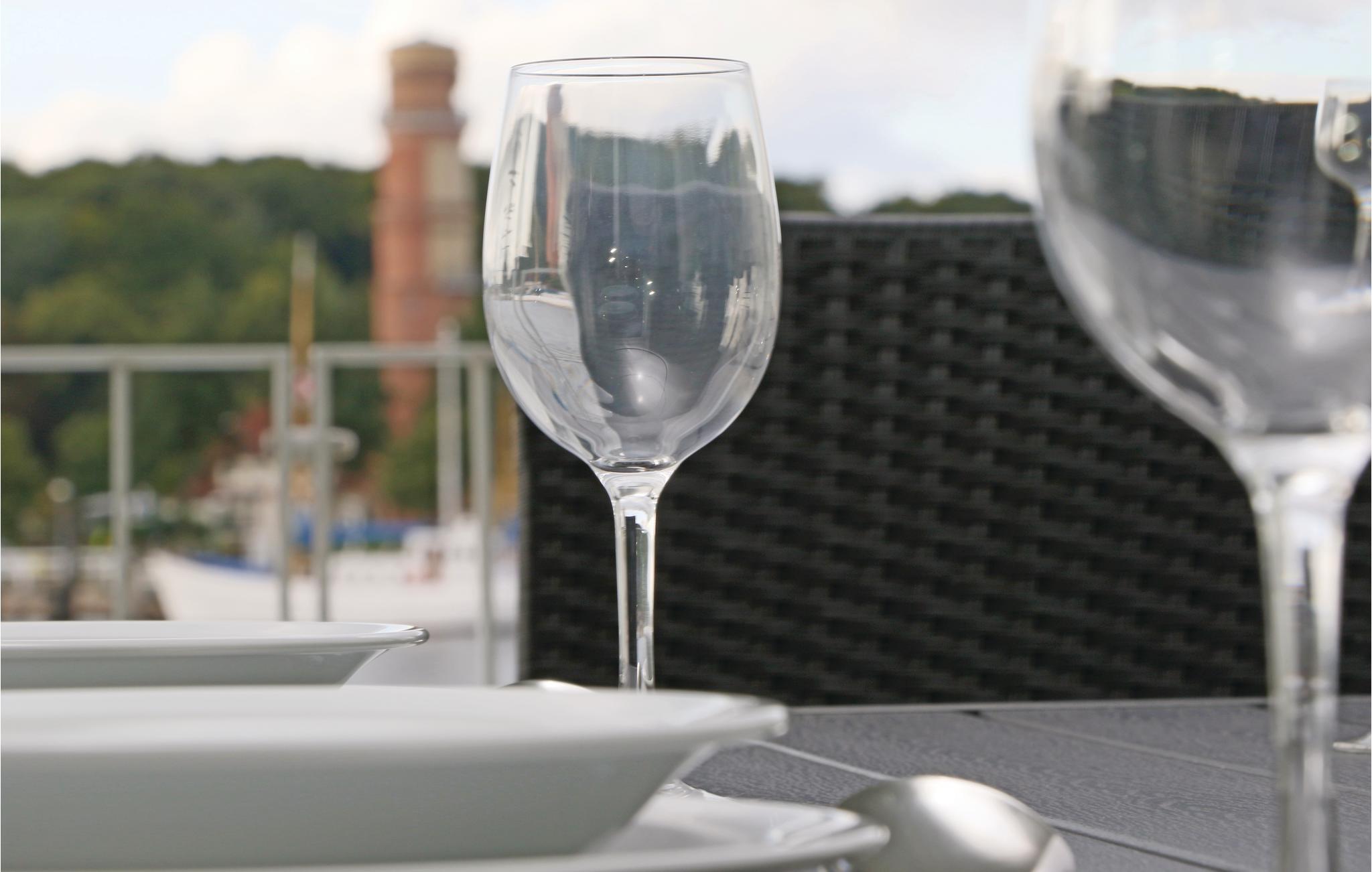 Genießen Sie den Ausblick über den Segelhafen, die Travemündung und die Ostsee. Nicht nur von der großen Terrasse aus, sondern auch durch die zahlreichen Panoramafenster fällt der Blick auf das beeindruckende Museumsschiff „Passat“ und die in fast greifbarer Nähe vorübergleitenden großen Skandinavienfähren - ein einmaliger Panoramablick!