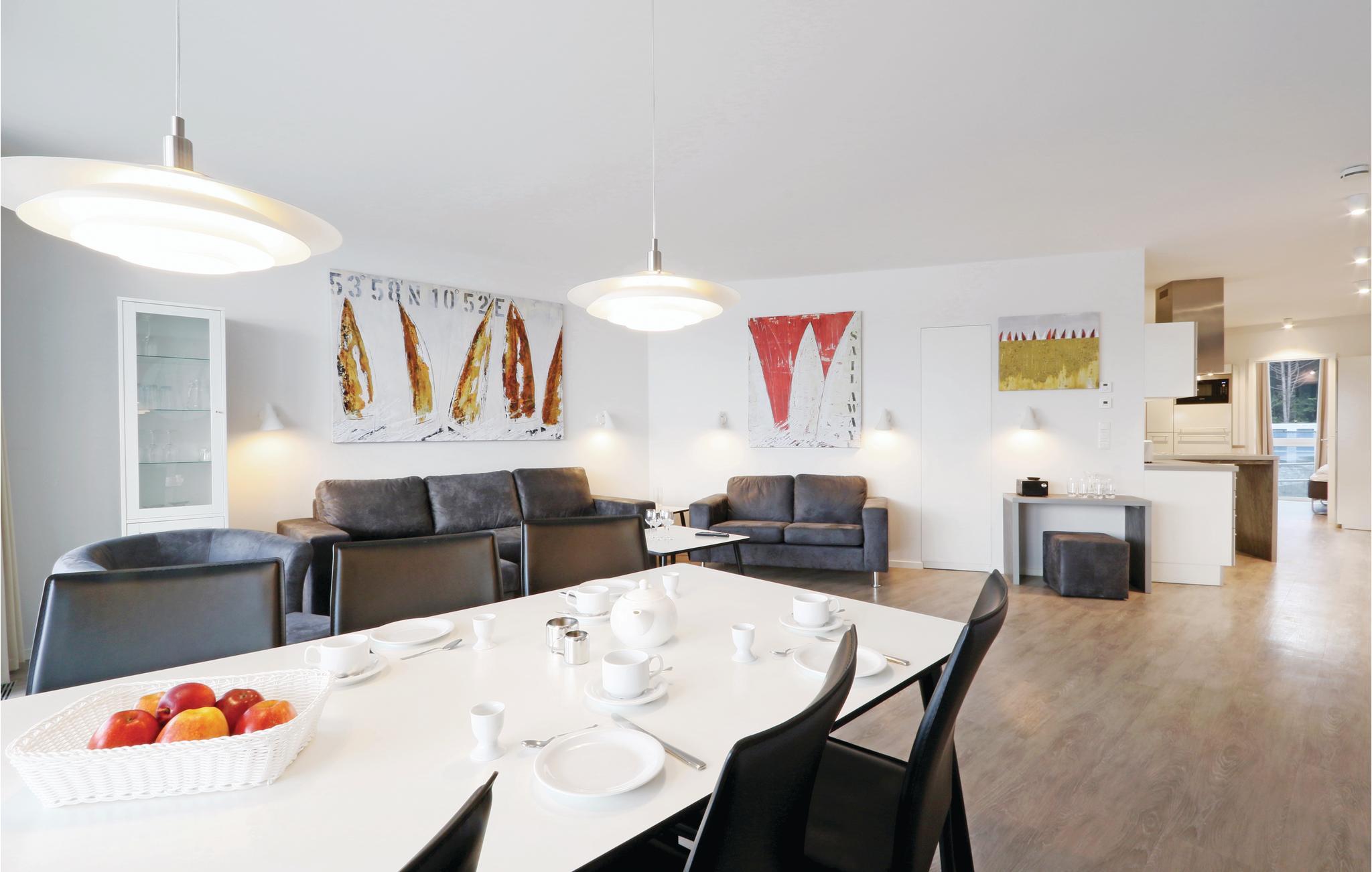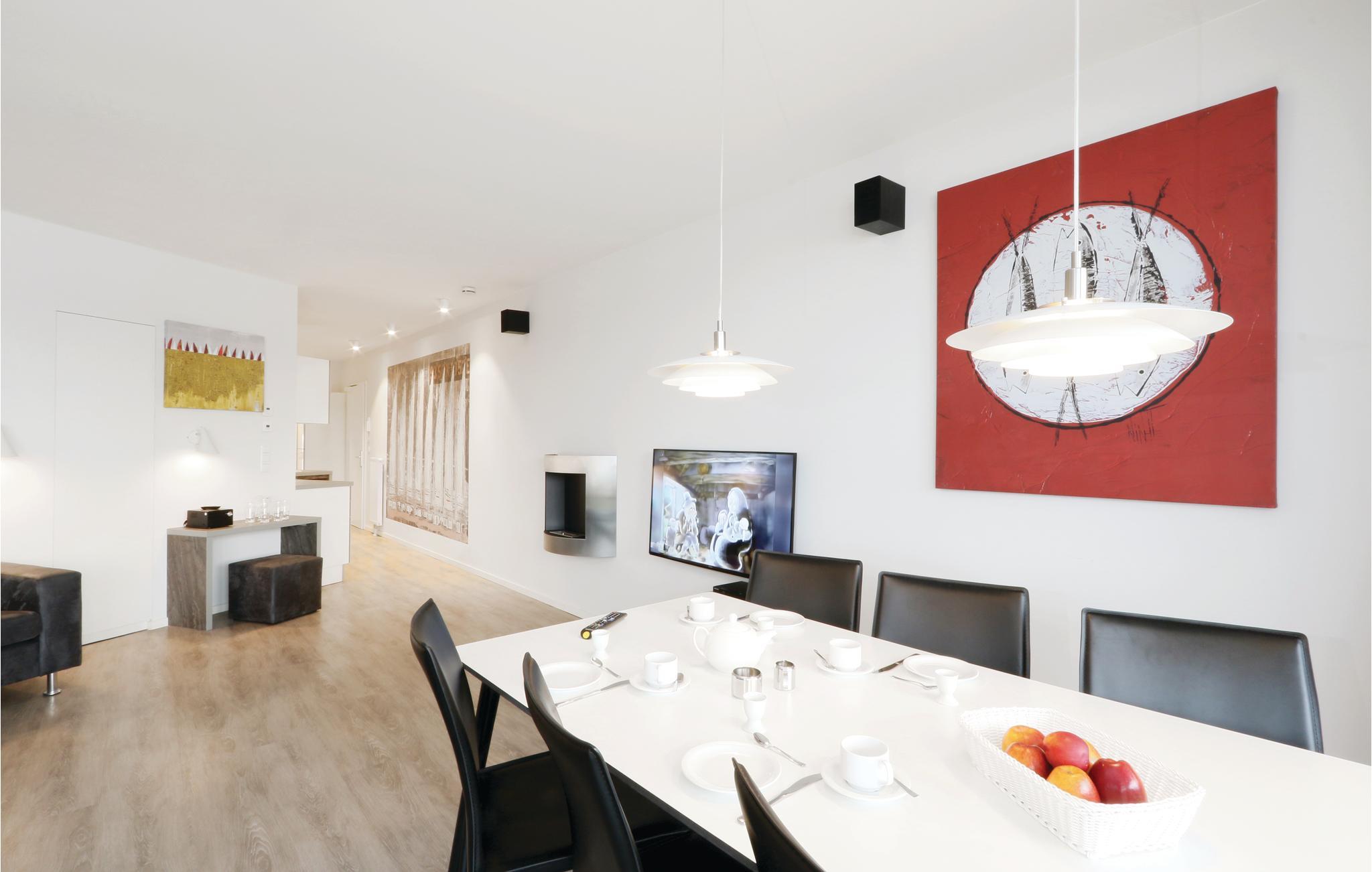 Die Wohnung ist stilvoll, hochwertig und modern eingerichtet. Ein besonderes Highlight ist das Bad, Ihr persönlicher kleiner Wellnessbereich mit Sauna, Whirlpool und Dampfbad mit integrierter Doppelregendusche. Das Wohlfühlprogramm setzt sich im Wohnbereich fort, denn die flackernden Flammen des Bioethanolkamins tauchen den Raum in ein besonders gemütliches Licht. Das Sofa lässt sich mit wenigen Handgriffen in zwei bequeme Schlafmöglichkeiten umwandeln.