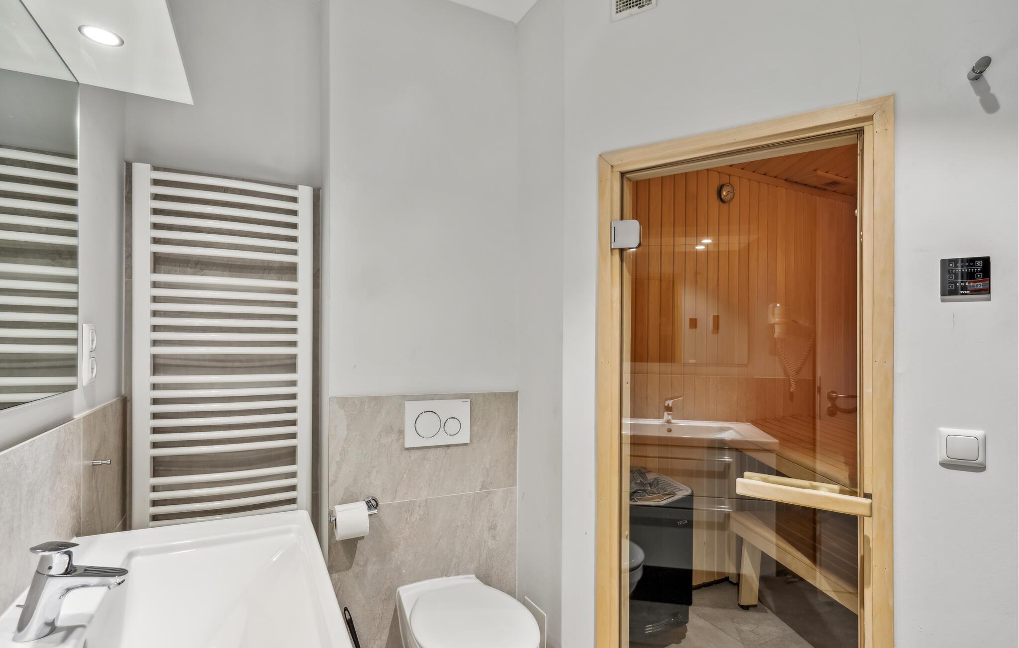 Die Wohnung ist stilvoll, hochwertig und modern eingerichtet. Ein besonderes Highlight ist das Bad, Ihr persönlicher kleiner Wellnessbereich mit Sauna und Dampfbad mit integrierter Regendusche. Das Wohlfühlprogramm setzt sich im Wohnbereich fort, denn die flackernden Flammen des Bioethanolkamins tauchen den Raum in ein besonders gemütliches Licht. Das Sofa lässt sich mit wenigen Handgriffen in zwei bequeme Schlafmöglichkeiten umwandeln.