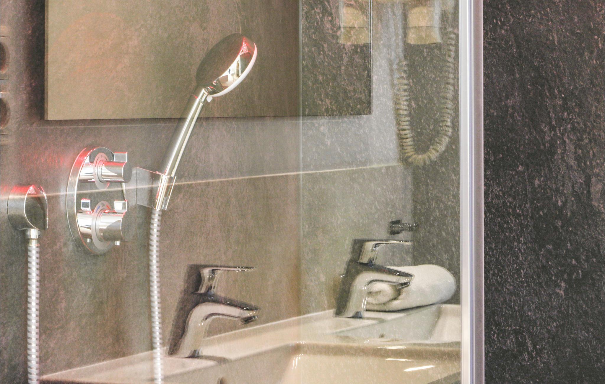 - WC mit warmem und kaltem Wasser, Dusche