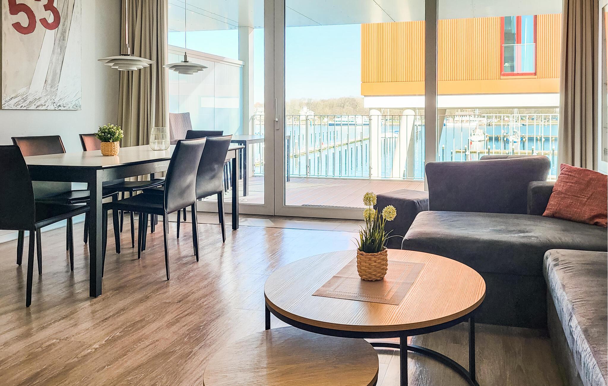 Exklusive Ferienwohnung in Travemünde BeachBay mit Sauna, Whirlpool und Blick auf die Ostsee und den Yachthafen.