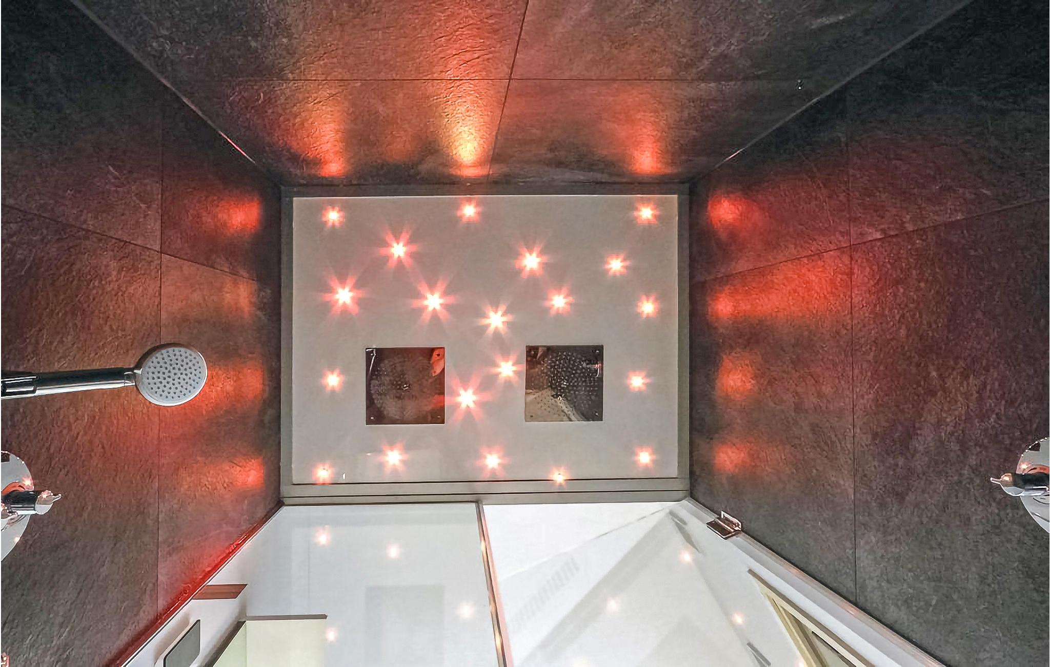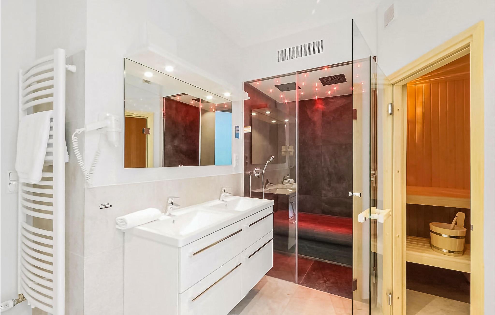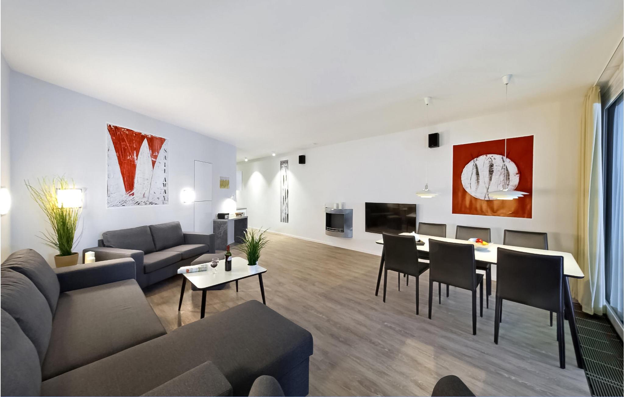 Die Wohnung ist stilvoll, hochwertig und modern eingerichtet. Ein besonderes Highlight ist das Bad, Ihr persönlicher kleiner Wellnessbereich mit Sauna, Whirlpool und Dampfbad mit integrierter Doppelregendusche. Das Wohlfühlprogramm setzt sich im Wohnbereich fort, denn die flackernden Flammen des Bioethanolkamins tauchen den Raum in ein besonders gemütliches Licht. Das Sofa lässt sich mit wenigen Handgriffen in zwei bequeme Schlafmöglichkeiten umwandeln.