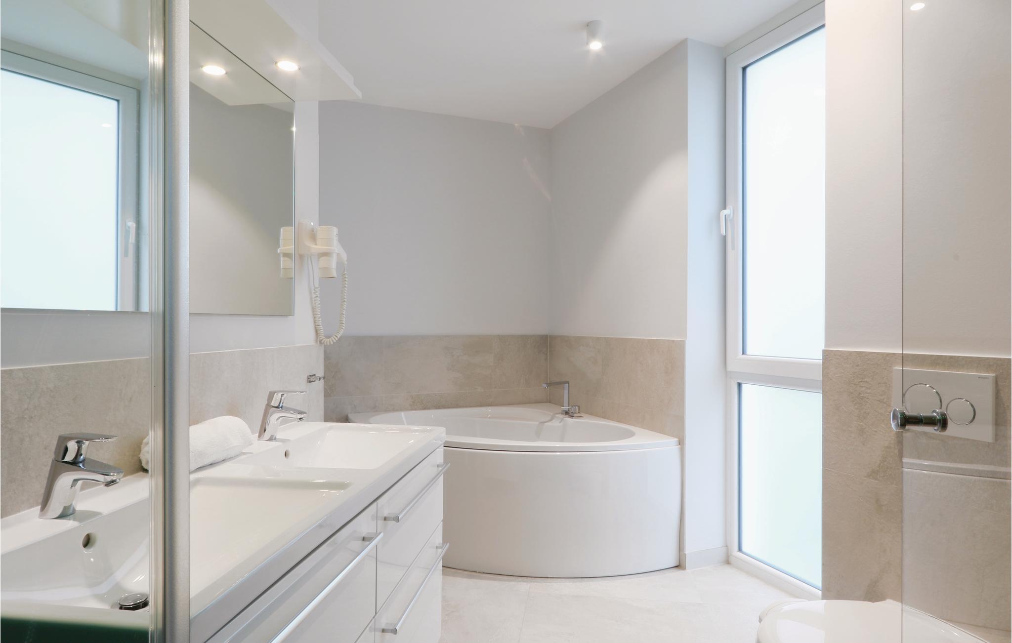 Die Wohnung ist stilvoll, hochwertig und modern eingerichtet. Ein besonderes Highlight ist das Bad, Ihr persönlicher kleiner Wellnessbereich mit Sauna, Whirlpool und Dampfbad mit integrierter Doppelregendusche. Das Wohlfühlprogramm setzt sich im Wohnbereich fort, denn die flackernden Flammen des Bioethanolkamins tauchen den Raum in ein besonders gemütliches Licht. Das Sofa lässt sich mit wenigen Handgriffen in zwei bequeme Schlafmöglichkeiten umwandeln.