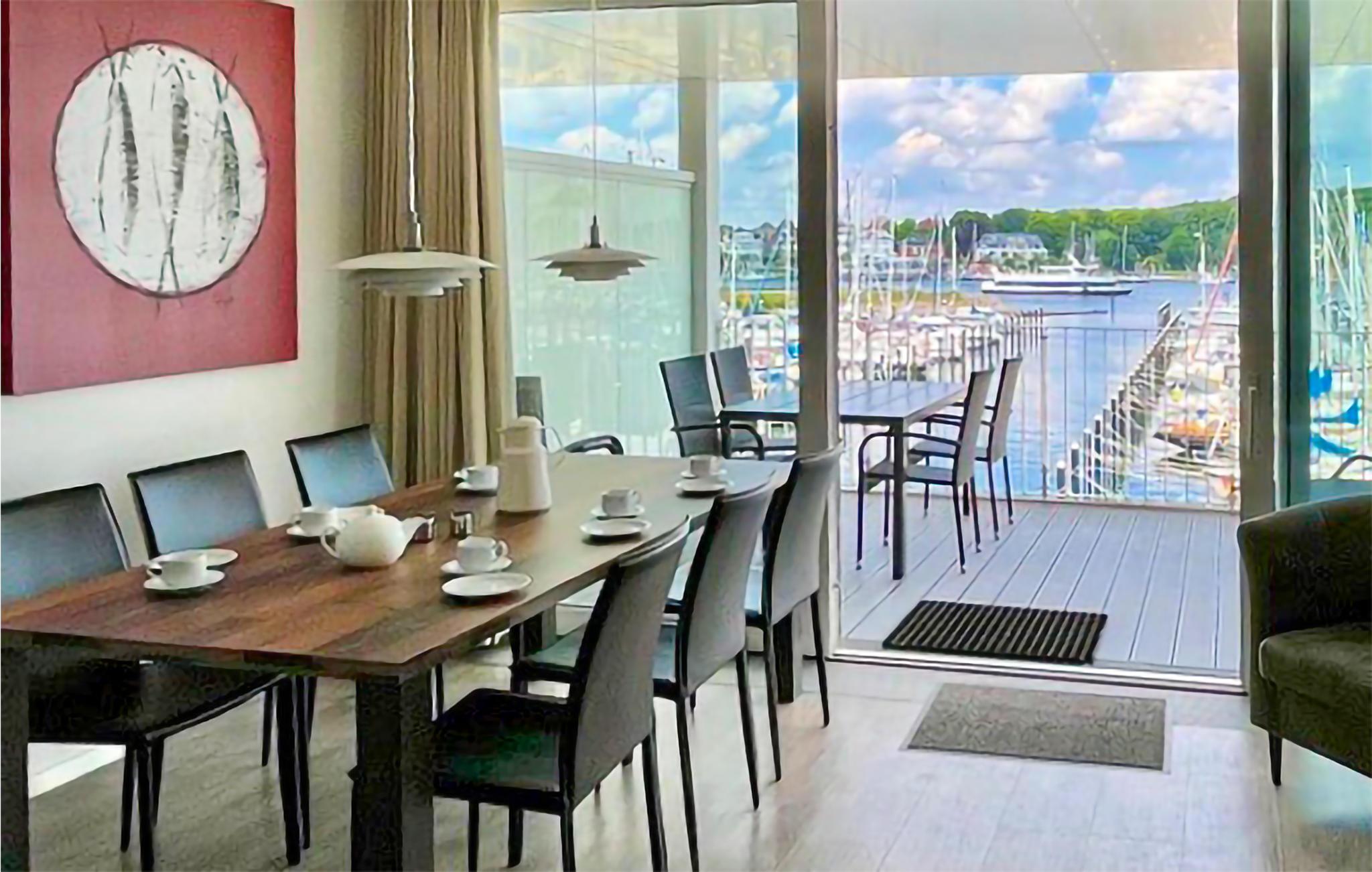 Genießen Sie den unvergesslichen Ausblick über den Segelhafen, die Travemündung und die Ostsee und verbringen Sie traumhafte Tage am Ostseestrand von Travemünde. Nicht nur vom großzügigen Balkon aus, sondern auch durch die zahlreichen Panoramafenster fällt der Blick auf die in fast greifbarer Nähe vorübergleitenden großen Skandinavienfähren - ein einmaliger Panoramablick!