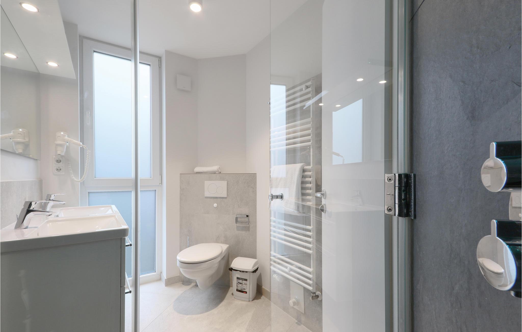 - WC mit warmem und kaltem Wasser, Dusche