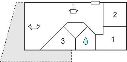 Badezimmer (nr. 1) - WC. Warmes und kaltes Wasser. Dusche