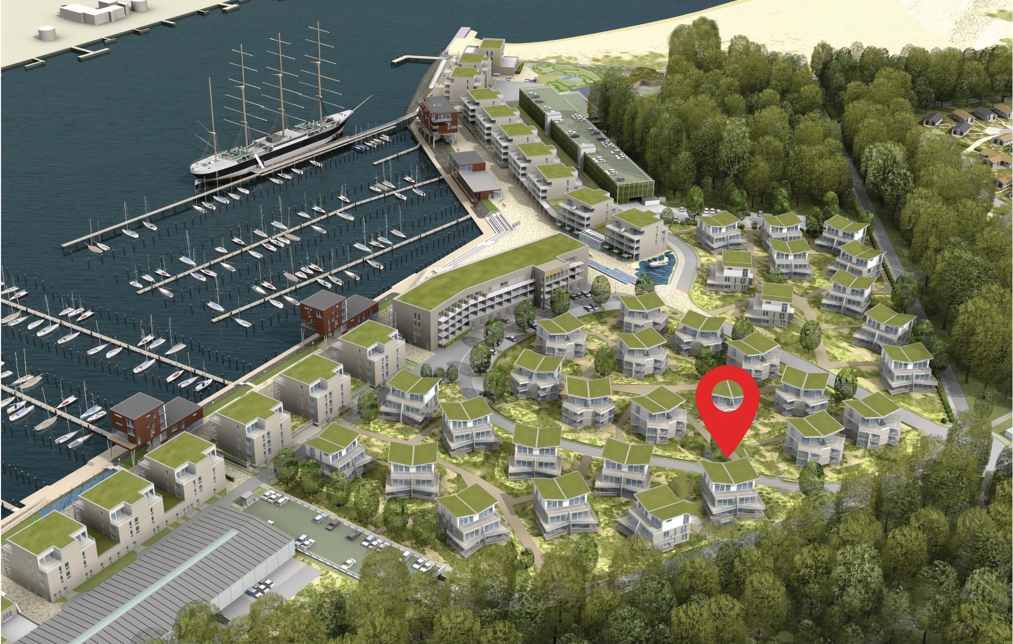 Die Dünenvillen befinden sich in ruhiger Lage, hinter den Promenadenvillen. Von hier aus gelangen Sie nach einem kurzen Spaziergang zum Sandstrand, der Marina und der Promenade.