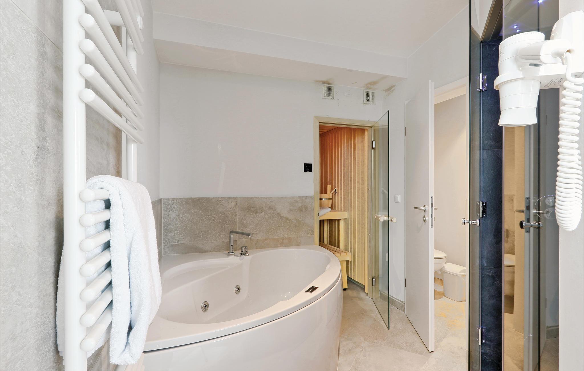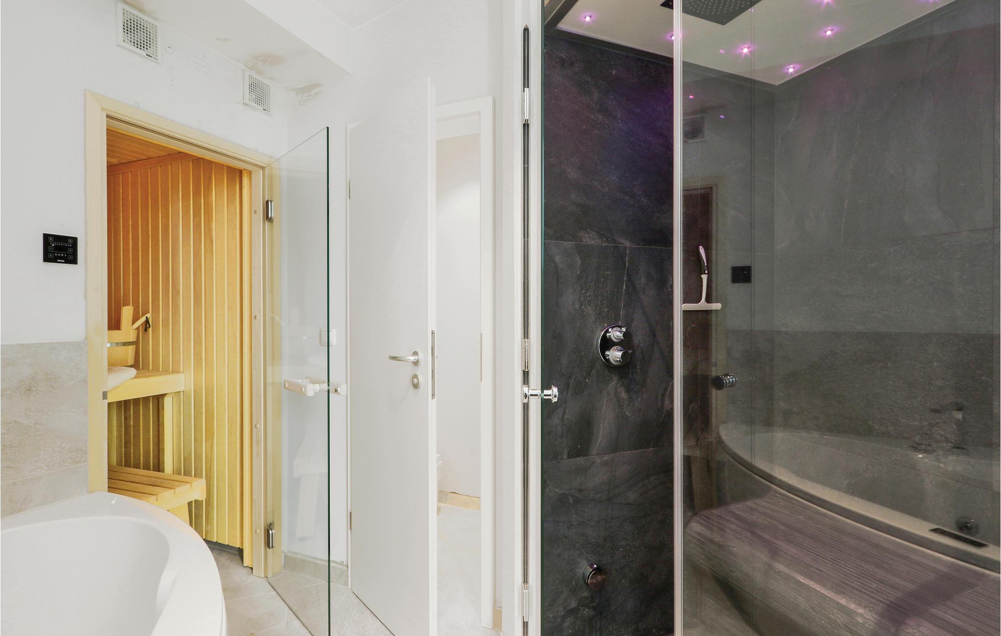 Das offene Badezimmer präsentiert sich Ihnen als privater Wellnessbereich mit Dampfbad und Doppelregendusche und ist über das Schlafzimmer zu erreichen. Entspannen Sie außerdem in der Sauna oder im Whirlpool. In der Küche finden Kaffeeliebhaber eine Nespresso-Maschine (Kapseln bitte selbst mitbringen), sowie Thermoskanne und Handfilter zum Selbstbrühen, falls Sie doch den klassischen Filterkaffee bevorzugen. Die Ferienwohnung verfügt außerdem über ein modernes Entertainmentsystem mit Blu-Ray-Player, zwei Flatscreen-TV und einer Musikanlage mit MP3-Anschluss.