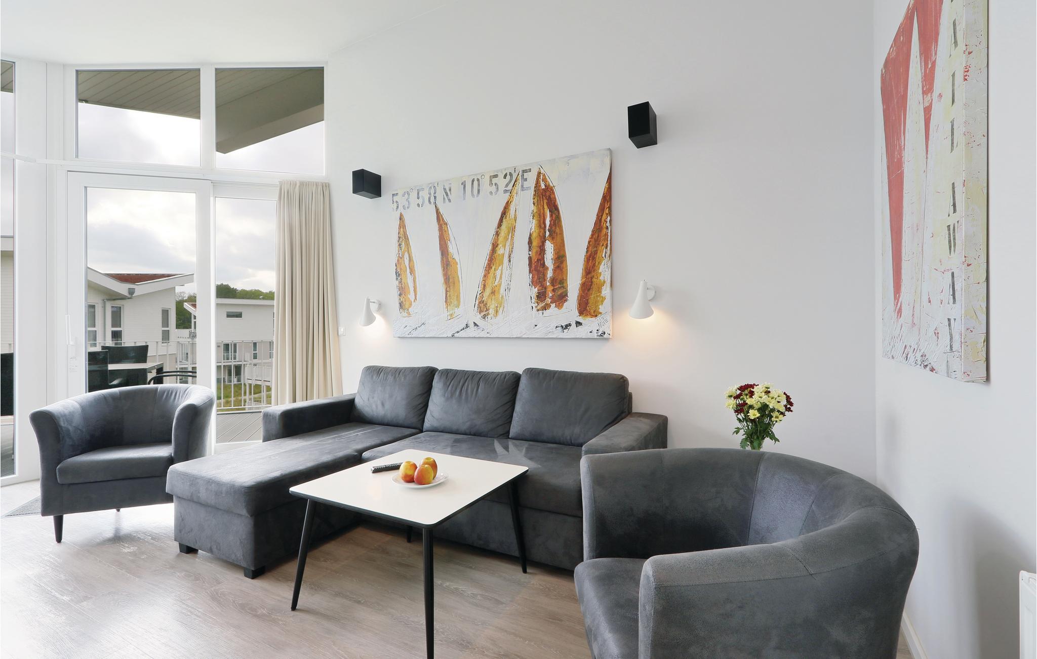 Das Penthouse ist hochwertig ausgestattet und überzeugt mit modernem Design. Das separate Schlafzimmer verfügt über ein gemütliches Doppelbett. Im Wohnbereich befinden sich zwei weitere Schlafplätze und Sie betreten von hier aus die großzügige Dachterrasse, das Highlight Ihrer Unterkunft. Genießen Sie den wunderschönen Blick über die Dünen und die Anlage. Vor dem Bio-Ethanolkamin können Sie es sich an regnerischen Tagen gemütlich machen. Dieser taucht Ihre Ferienwohnung in ein angenehmes Licht.