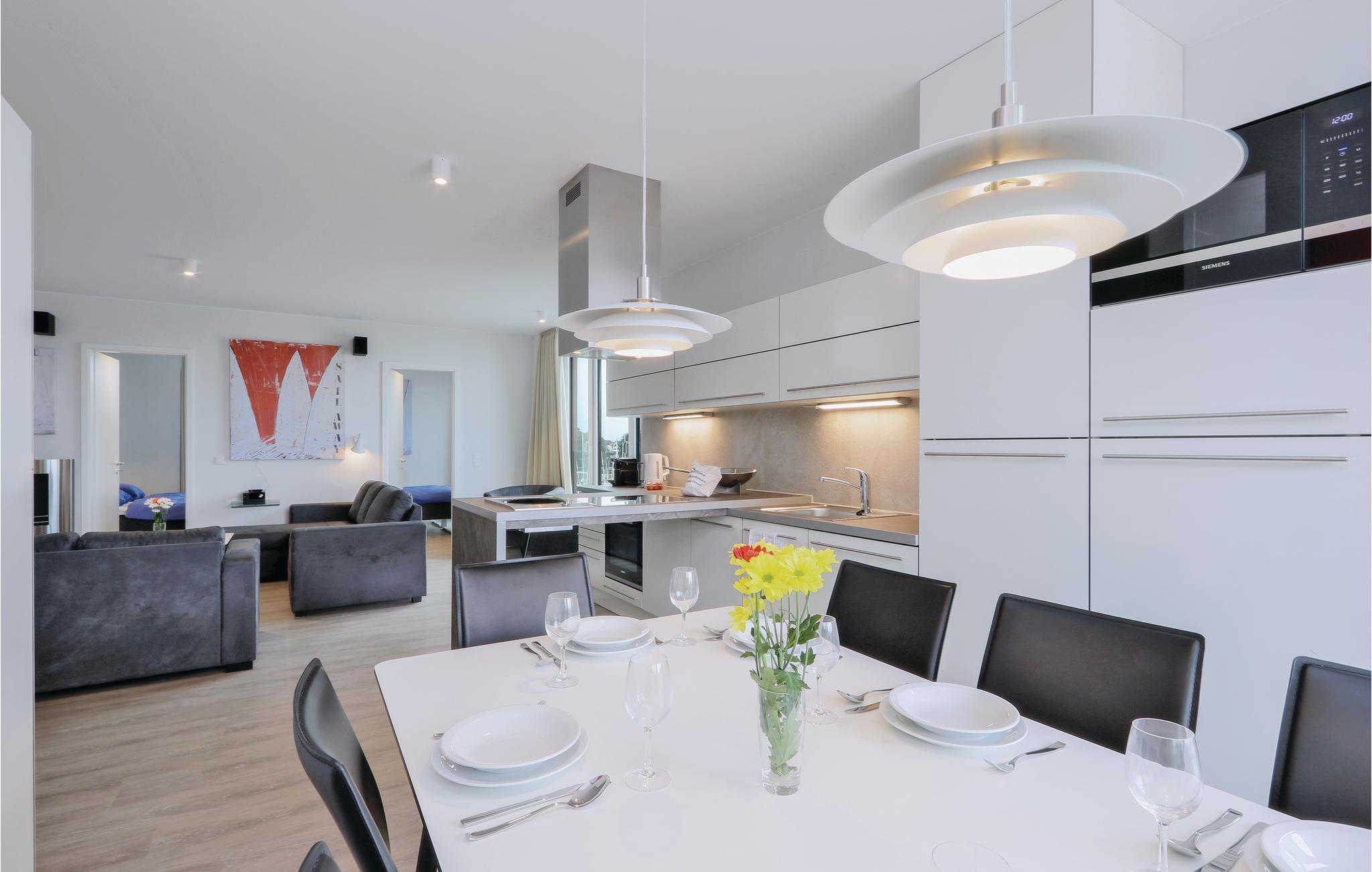 Die vier separaten Schlafzimmer verfügen über je ein gemütliches Doppelbett bzw. zwei Einzelbetten. Die Wohnung im 3. Obergeschoss ist stilvoll und modern eingerichtet, alle Zimmer sind lichtdurchflutet und hell. Küche und Wohnbereich befinden sich in in einem Raum. Das erste Badezimmer verfügt über eine Doppelregendusche, Dampfbad und Whirlpool. Im zweiten Bad können Sie sich nach einem langen Spaziergang an der kühlen Ostseeluft in der Sauna aufwärmen.