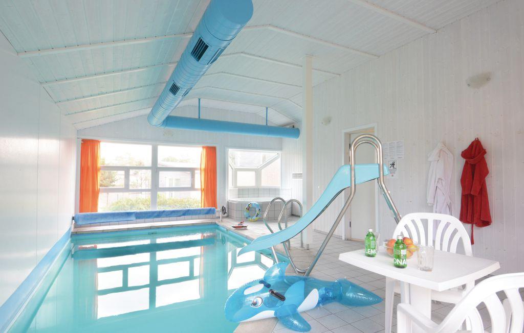 Erleben Sie pure Entspannung in Ihrem Ferienhaus, das Komfort und Gemütlichkeit vereint. Direkt hinter den Dünen erwartet Sie ein Ort, an dem Sie zu jeder Jahreszeit abschalten und neue Energie tanken können. Genießen Sie das helle, freundliche Wohnambiente mit hohen Decken und großen Fenstern, die viel Tageslicht hereinlassen. Entspannen Sie in der bequemen Sofaecke, während der Kaminofen angenehme Wärme spendet. In der Küche mit viel Stauraum und offenem Zugang zum Essbereich können Sie gemeinsam kochen und Ihre Urlaubsmahlzeiten genießen. Das Haus verfügt über einen eigenen Wellnessbereich mit Whirlpool und Sauna – ideal, um nach einem Tag an der frischen Seeluft zur Ruhe zu kommen. Besonders der großzügige Innenpool sorgt für Spaß und Entspannung bei jedem Wetter.