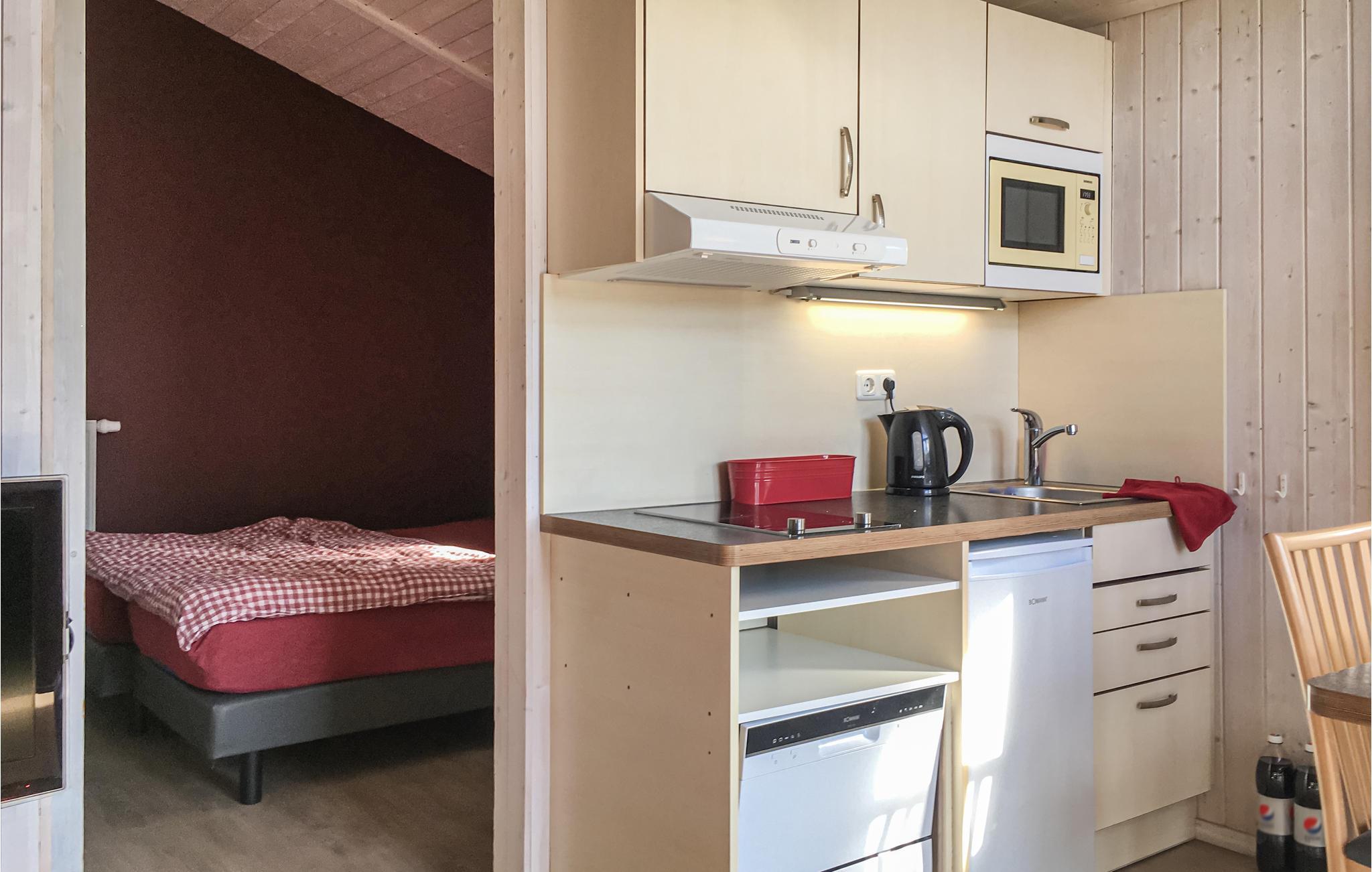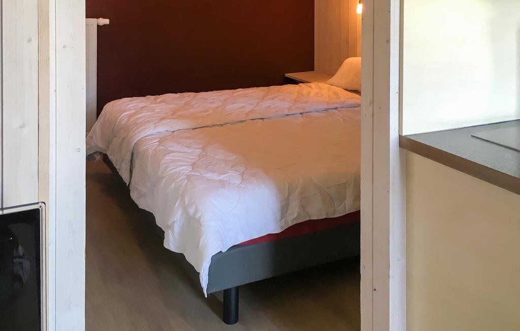 Mit 28 m² ist es besonders gut für den Urlaub zu zweit geeignet. Auf Anfrage lässt sich auch ein Kinderbett zustellen. Bitte beachten Sie, dass zwischen Schlaf- und Wohnbereich keine Tür, sondern ein offener Durchgang ist.