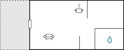 Wohnraum/Küche - 1 Schlafmöglichkeit. (Schlafsofa,Matratze,Sonstiges).