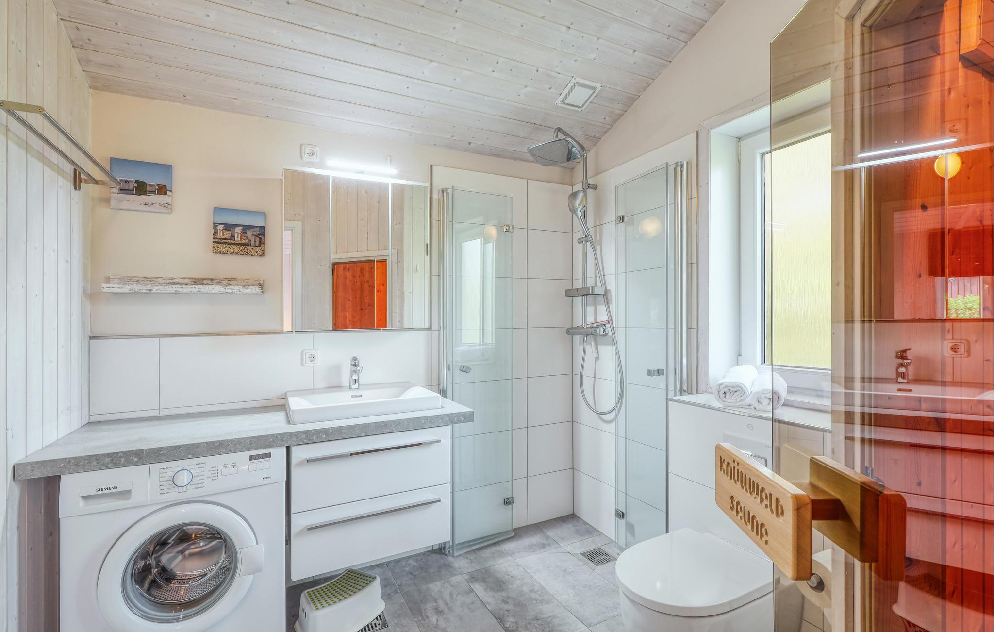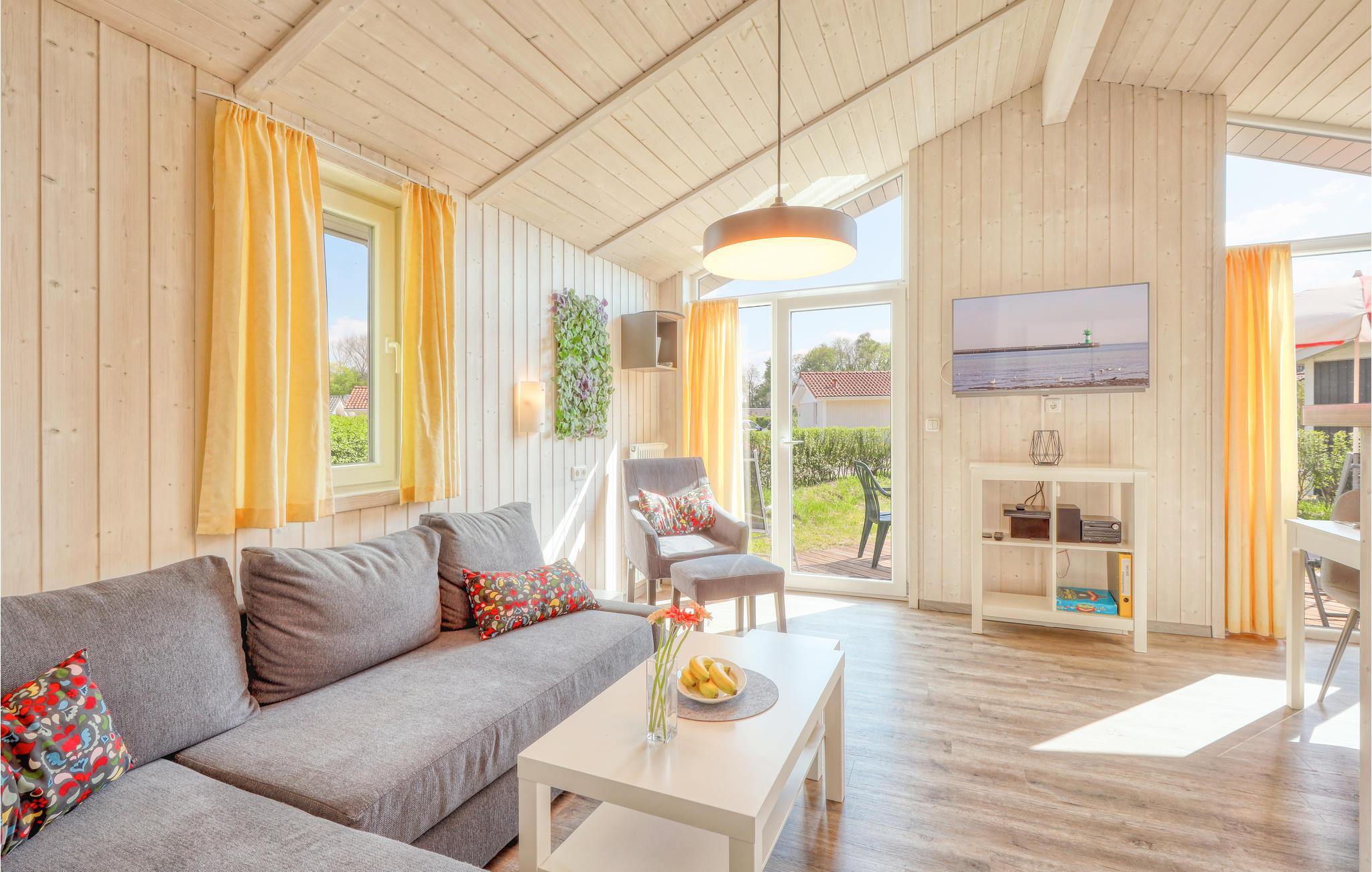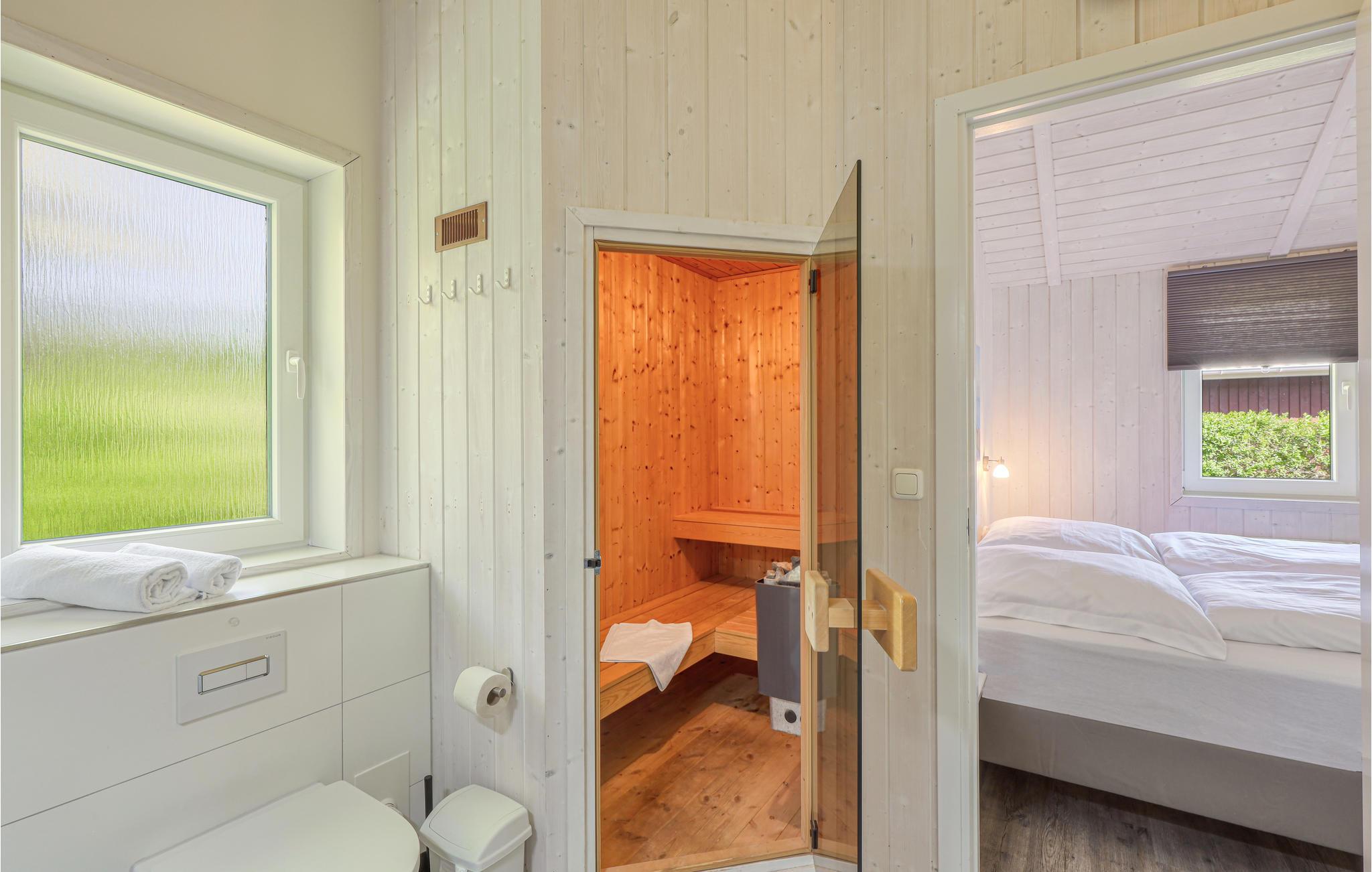 Dank eines Schlafsofas im Wohnbereich können hier bis zu sechs Personen urlauben, und das gerade einmal hundert Meter vom bekannten, breiten Strand von Travemünde-Priwall entfernt. Das Highlight der Häuser ist das große Badezimmer, das über eine Sauna verfügt. Es ist von beiden Schlafzimmern aus zugänglich. Hier können Sie sich gerade an kühleren Tagen nach langen Strandspaziergängen wieder aufwärmen und bei Aromaaufgüssen perfekt entspannen.