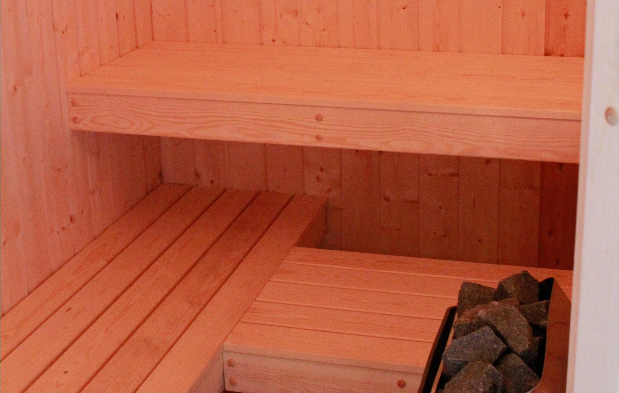 Dank eines Schlafsofas im Wohnbereich können hier bis zu sechs Personen urlauben, und das gerade einmal hundert Meter vom bekannten, breiten Strand von Travemünde-Priwall entfernt. Das Highlight der Häuser ist das große Badezimmer, das über eine Sauna verfügt. Es ist von beiden Schlafzimmern aus zugänglich. Hier können Sie sich gerade an kühleren Tagen nach langen Strandspaziergängen wieder aufwärmen und bei Aromaaufgüssen perfekt entspannen. Anschließend lassen sich vor dem Bioethanol-Kamin im Wohnzimmer gemütliche Stunden verbringen und der Alltag einfach mal vergessen.
