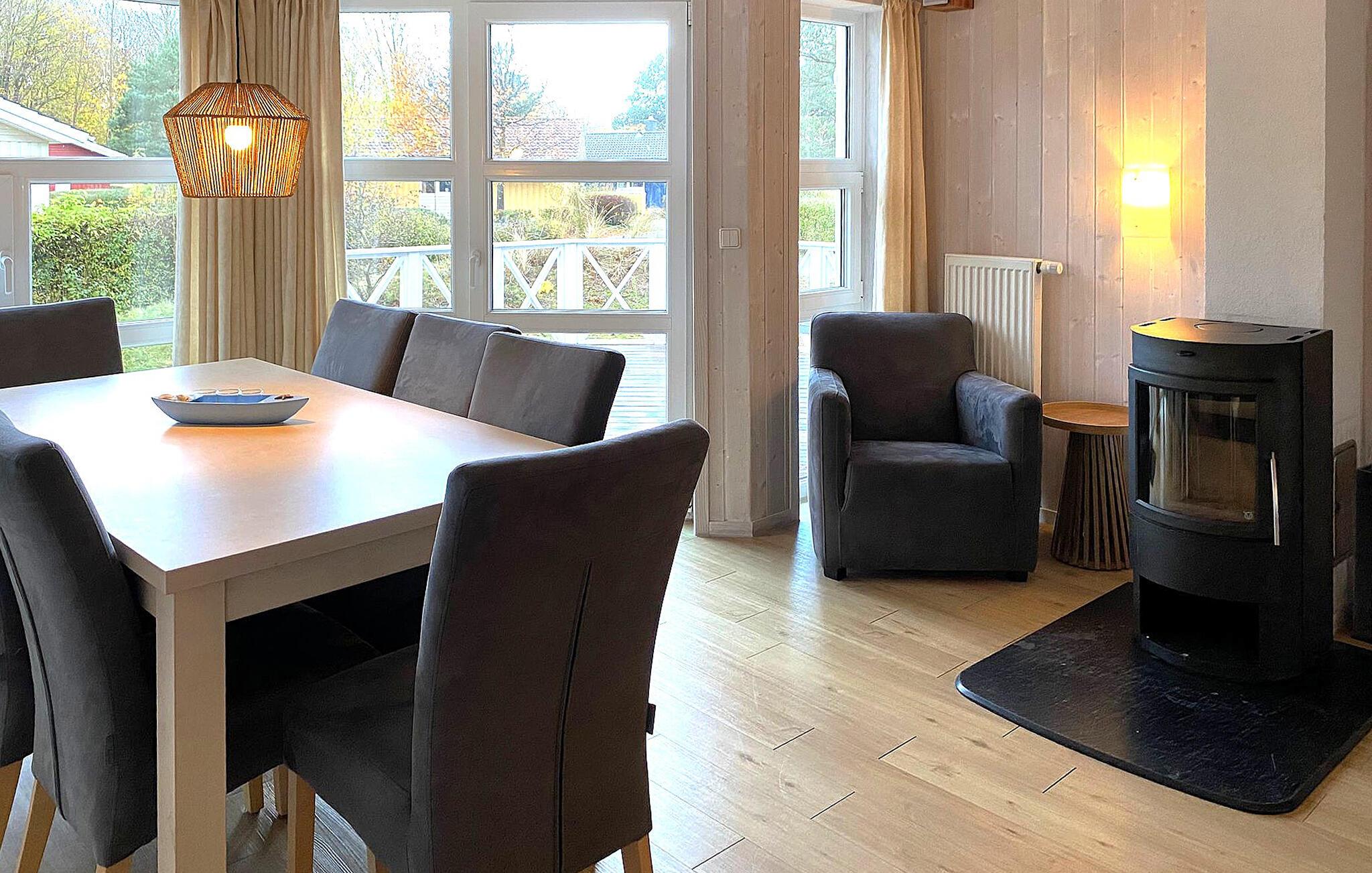 Im Wohnzimmer sorgt ein Kaminofen dafür, dass vor allem in der kalten Jahreszeit durch das prasselnde Feuer eine ganz besondere Atmosphäre gezaubert wird - und der Alltag erscheint bald ganz weit entfernt.