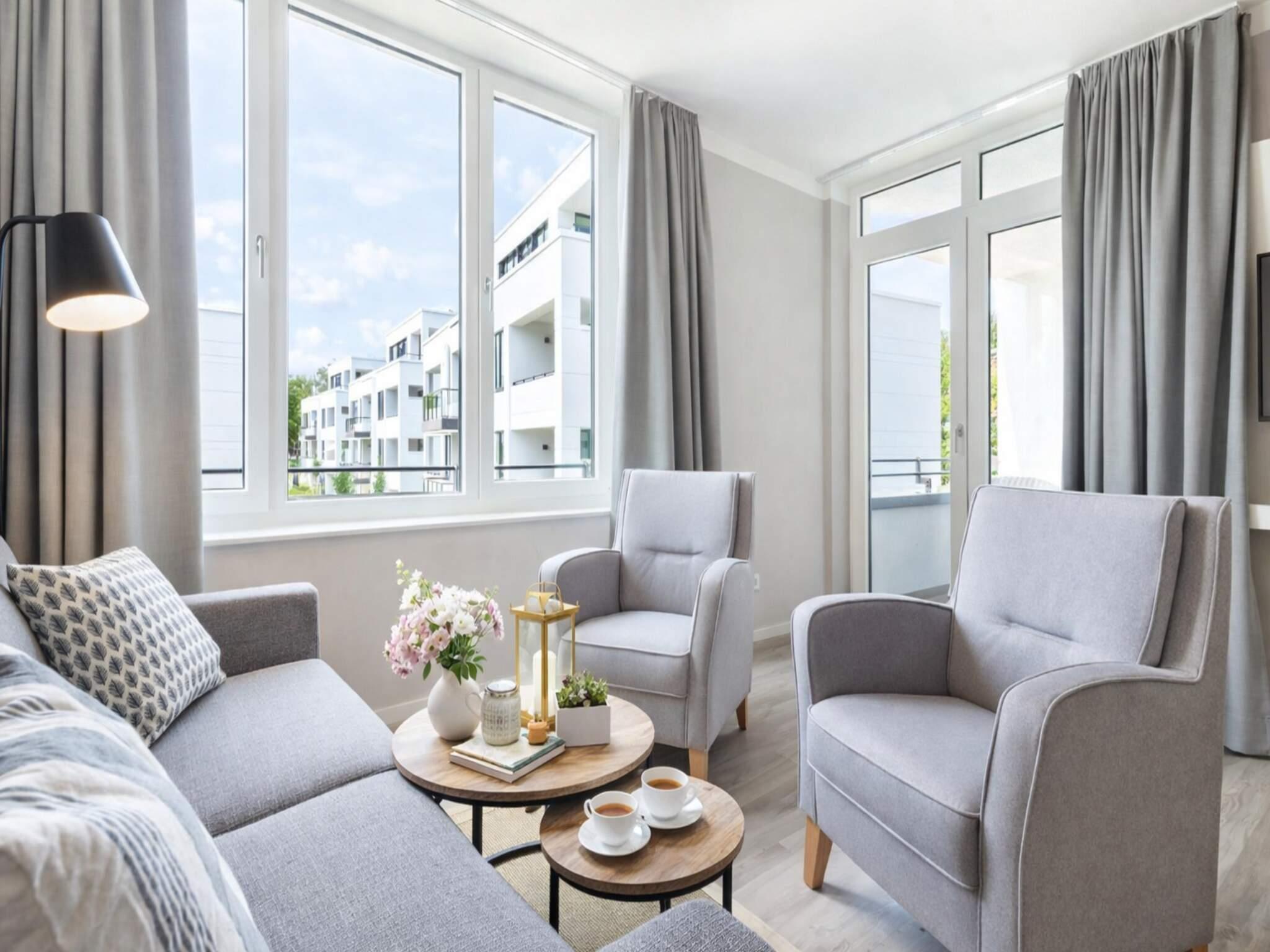 Modernes 2-Zimmer-Apartment in Travemünde mit Loggia, Meerblick und hochwertiger Ausstattung für erholsame Tage.