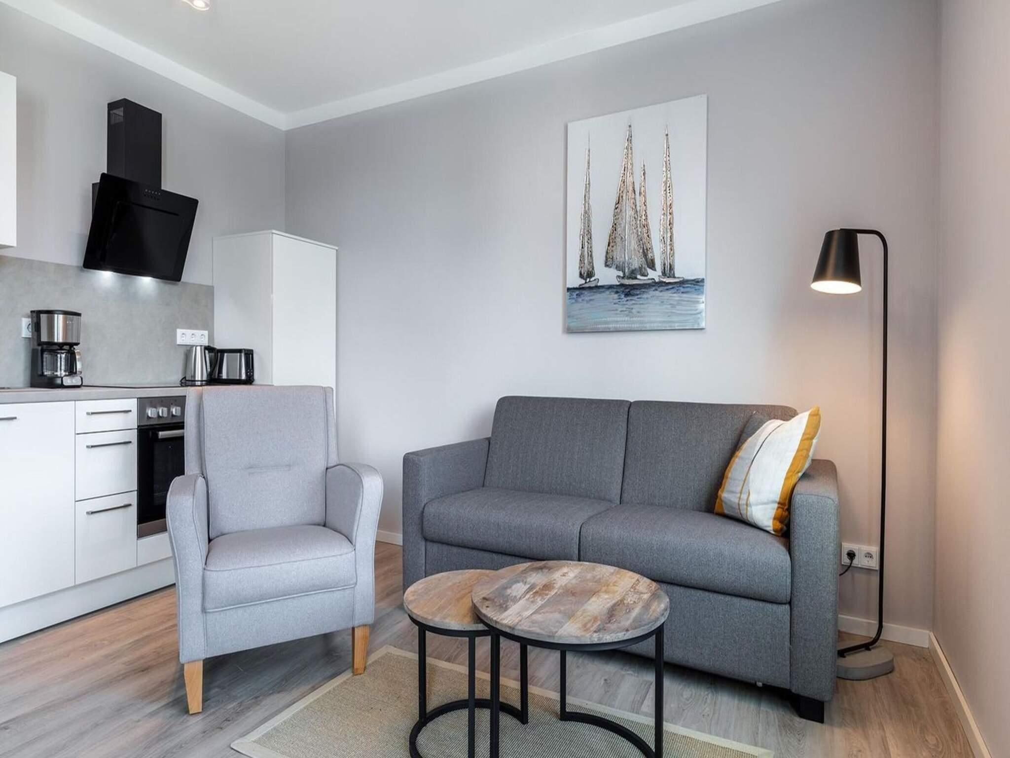 Stilvolles 2-Zimmer-Apartment in Travemünde mit Loggia, Fußbodenheizung und Blick in den Godewindpark.