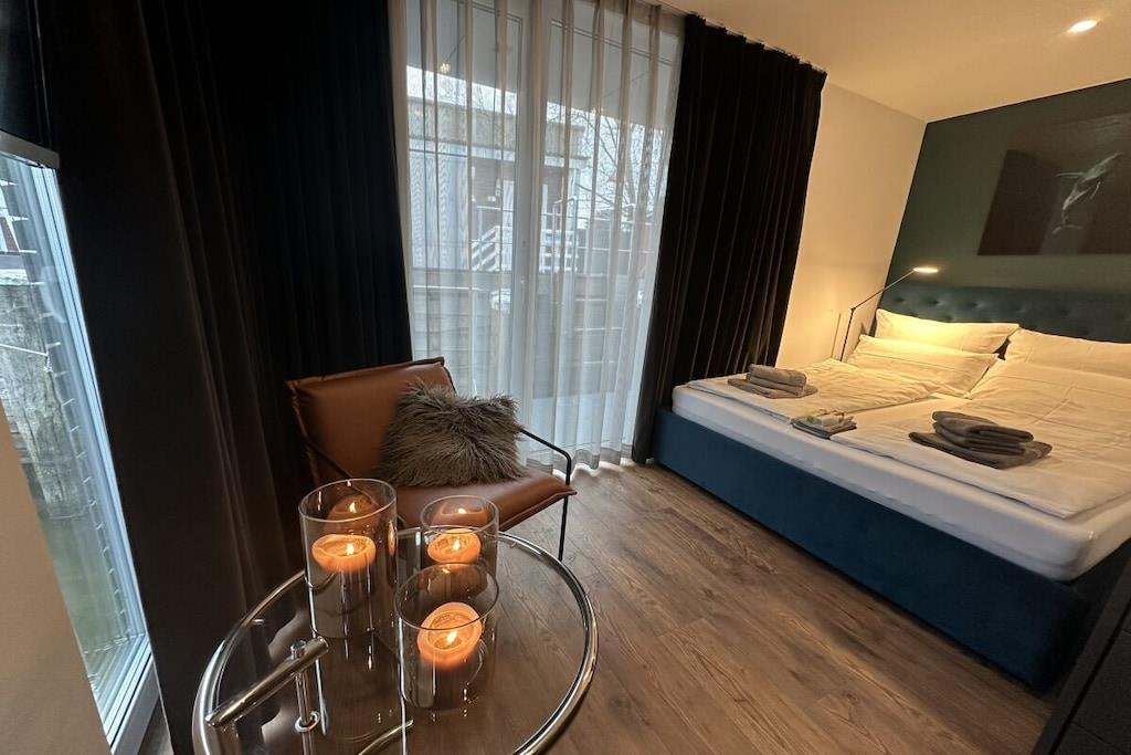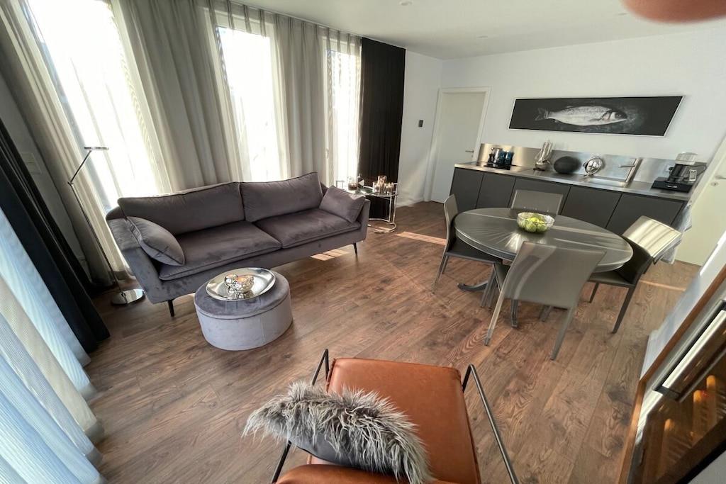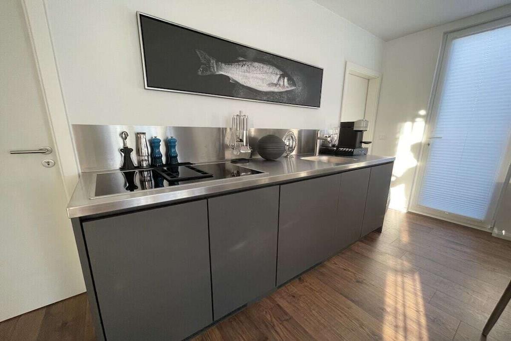 Fußbodenheizung, komplette Küche mit Backofen, Spülmaschine, Umweltfreundliche Bio Kläranlage, Dachterrasse mit Grill und Sitzmöbeln, Sonnenschutz, Minibar Getränke Service, Brötchenservice im Hafen, Ausgestattet für 4 Personen mit Dachterrasse mit dem Ausblick über die Trave und Ostsee