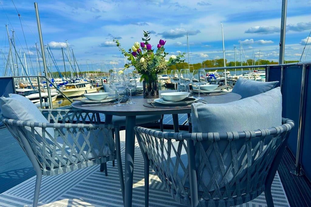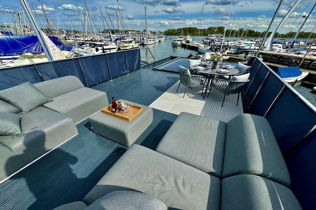 Exklusives Hausboot mit Dachterrasse und Meerblick