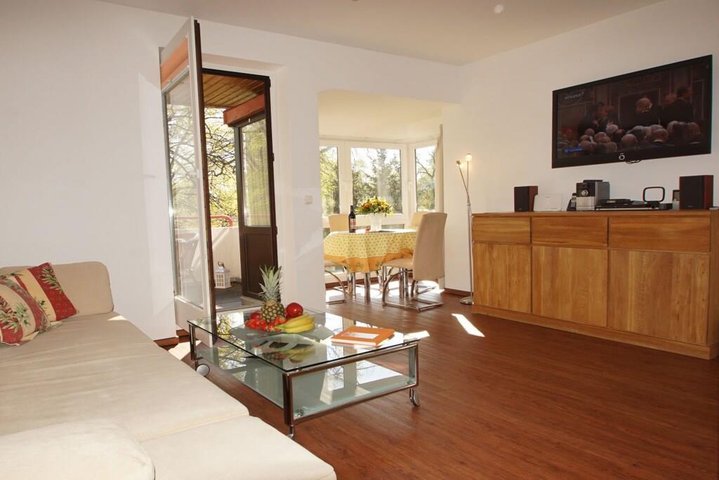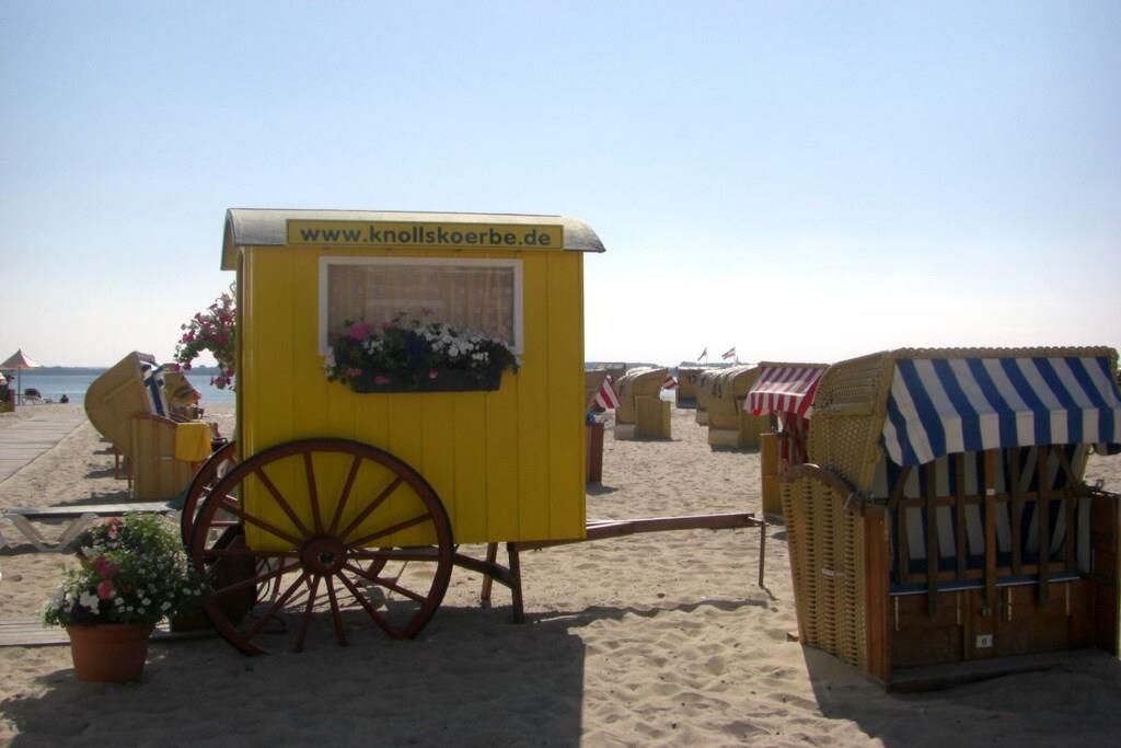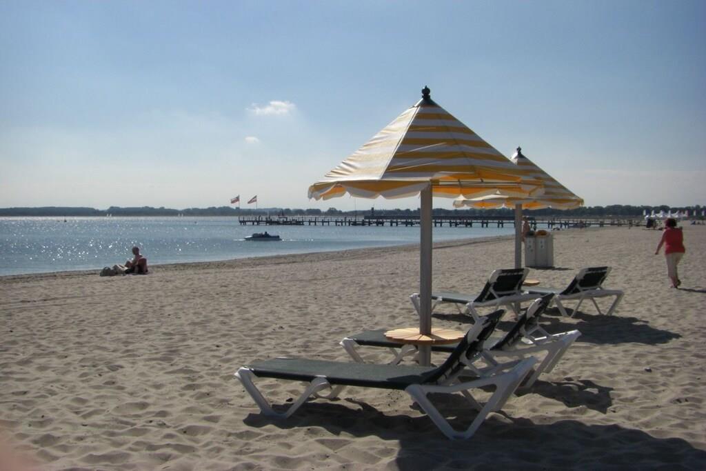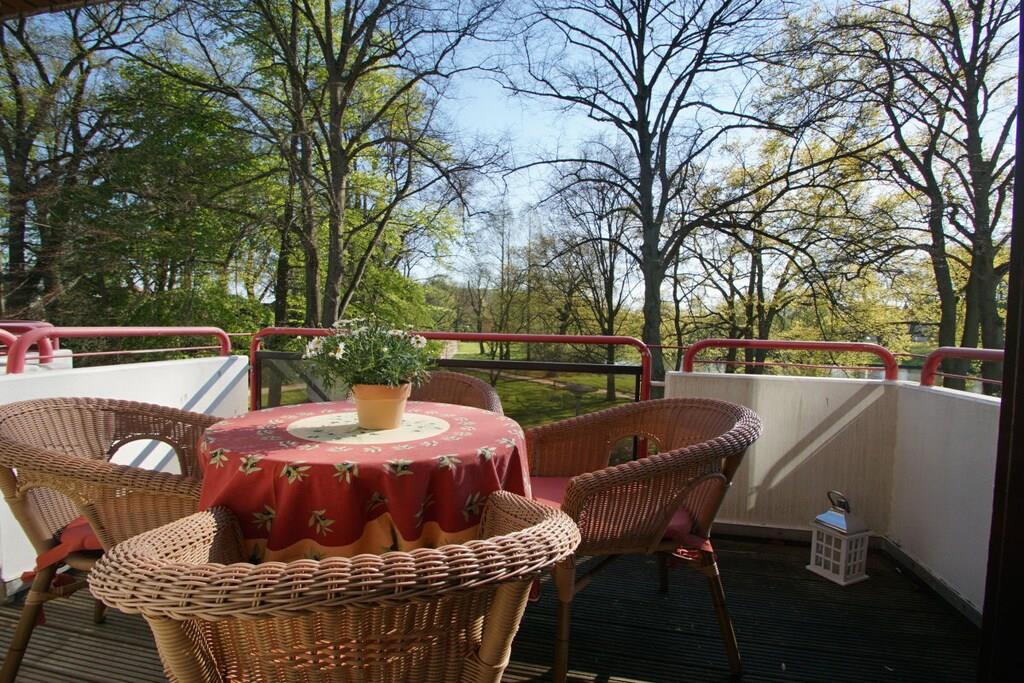 Komfortable Ferienwohnung mit Balkon und Parkblick in Travemünde, modern eingerichtet und mit Strandkorb im Sommer.