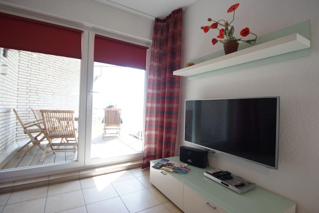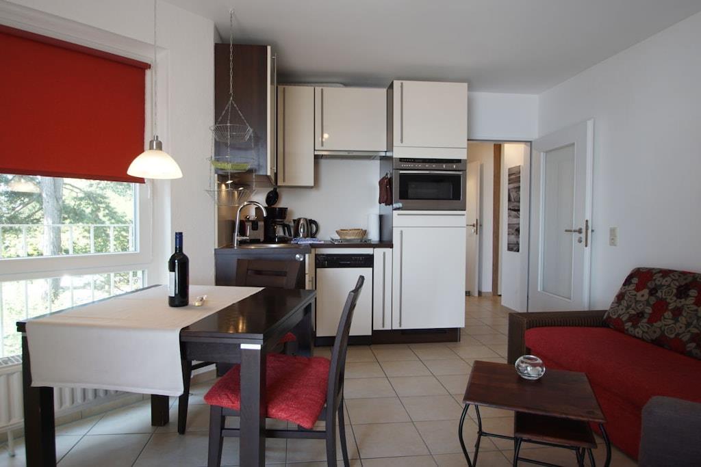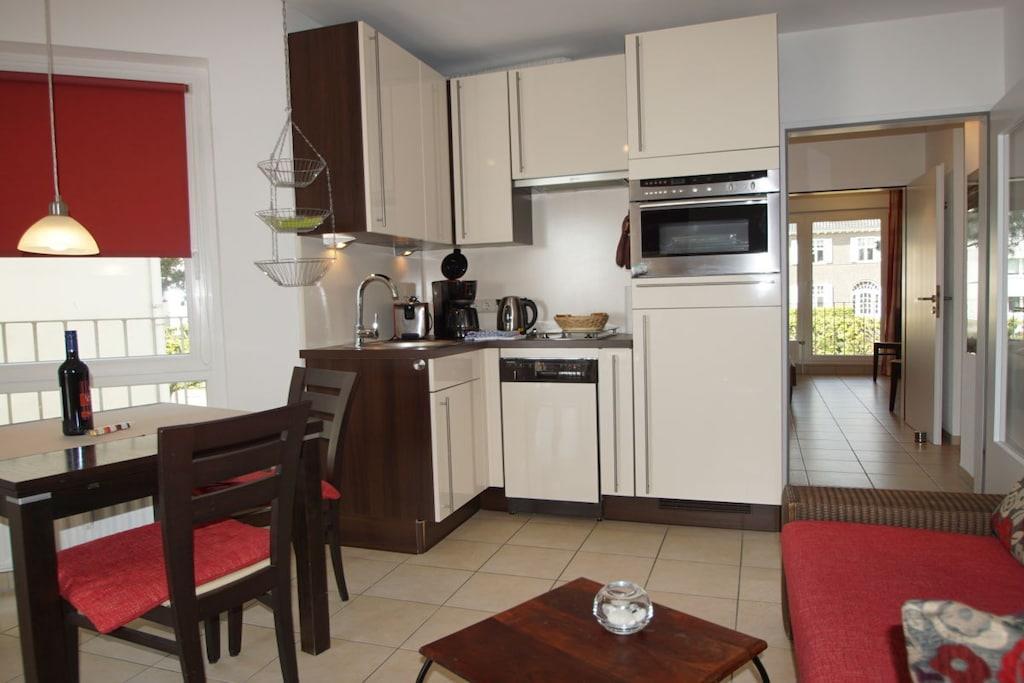 In Travemündes Prachtstraße – der Kaiserallee – finden Sie diese moderne Wohnung mit 2 Zimmern in Villenlage - absolut ruhig und trotzdem zentral. Die Wohnung befindet sich im 2. Obergeschoss eines exklusiven Hauses direkt am Strand. Vom Wohnzimmer gehen sie auf einen schönen Balkon/ mit herrlicher Seesicht! Sie schauen auf den Strand, das Meer und die Promenade bis hin zum Maritim. Den Strand erreichen Sie über einen privaten Zugang und einen schön angelegten Garten. Die schöne lichtdurchflutete Wohnung wurde in 2018 renoviert und modern möbliert. Die Wohnung ist mit einem design -Fußboden ausgestattet, das Badezimmer ist ebenfalls in weiß modern gestaltet. Die Einrichtung ist modern und hell – die Farben beige dominieren. Die Küche ist mit Technik namhafter Hersteller u.a. Cerankochfeld, Backofen, Mikrowelle , Kaffeemaschine, Wasserkocher, Toaster etc. ausgestattet. Zwei Fahrräder und ein Tiefgaragenstellplatz / Hydraulik warten ganzjährig auf Sie. Für Sonnenanbeter gibt es vom Schlafzimmer aus noch einen 2. kleinen Balkon mit Abendsonne!