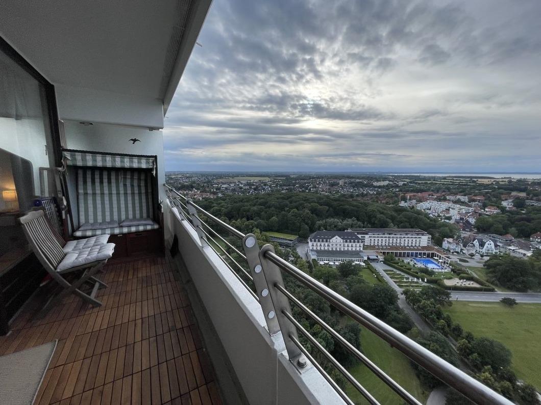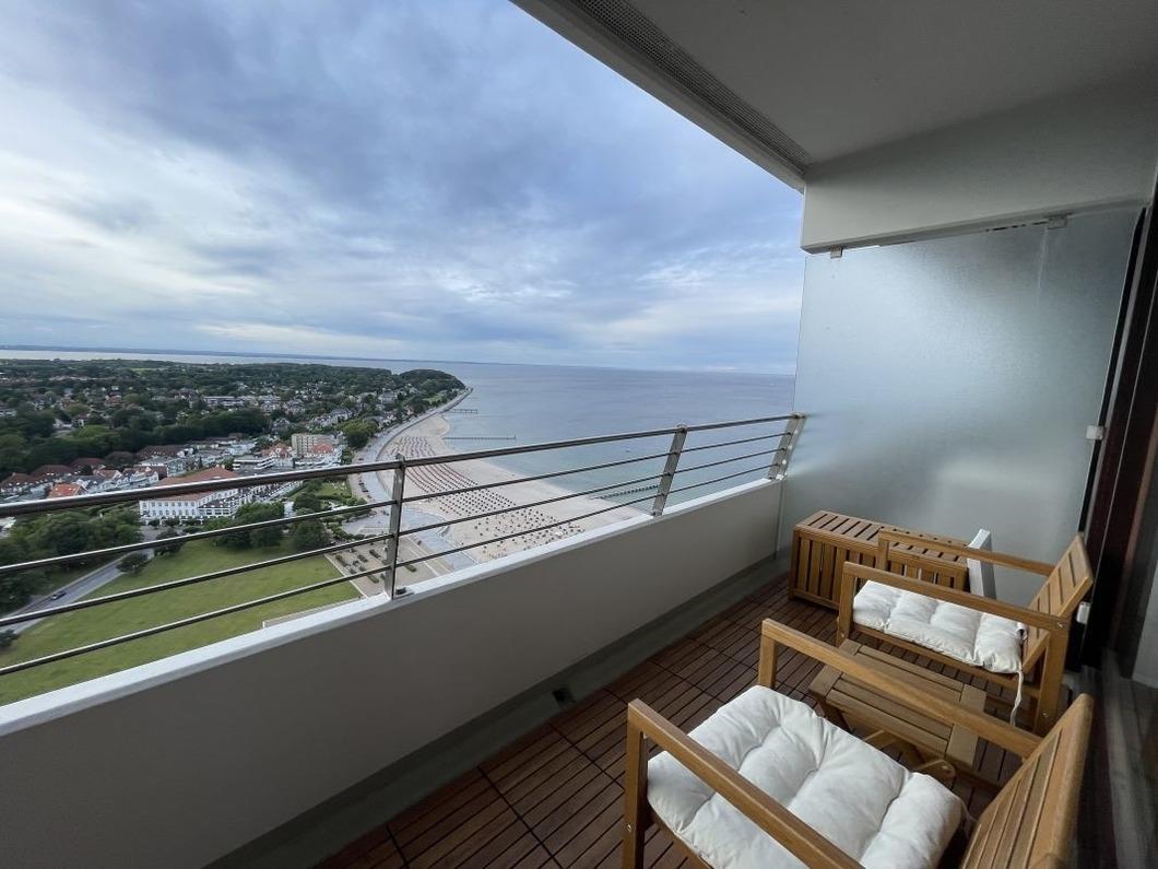 Dieses komfortable 2 Zimmer-Appartement (28. Etage) ist gemütlich gestaltet und bietet einen faszinierenden Panoramablick auf den Strand, das Meer und die Lübecker Bucht.