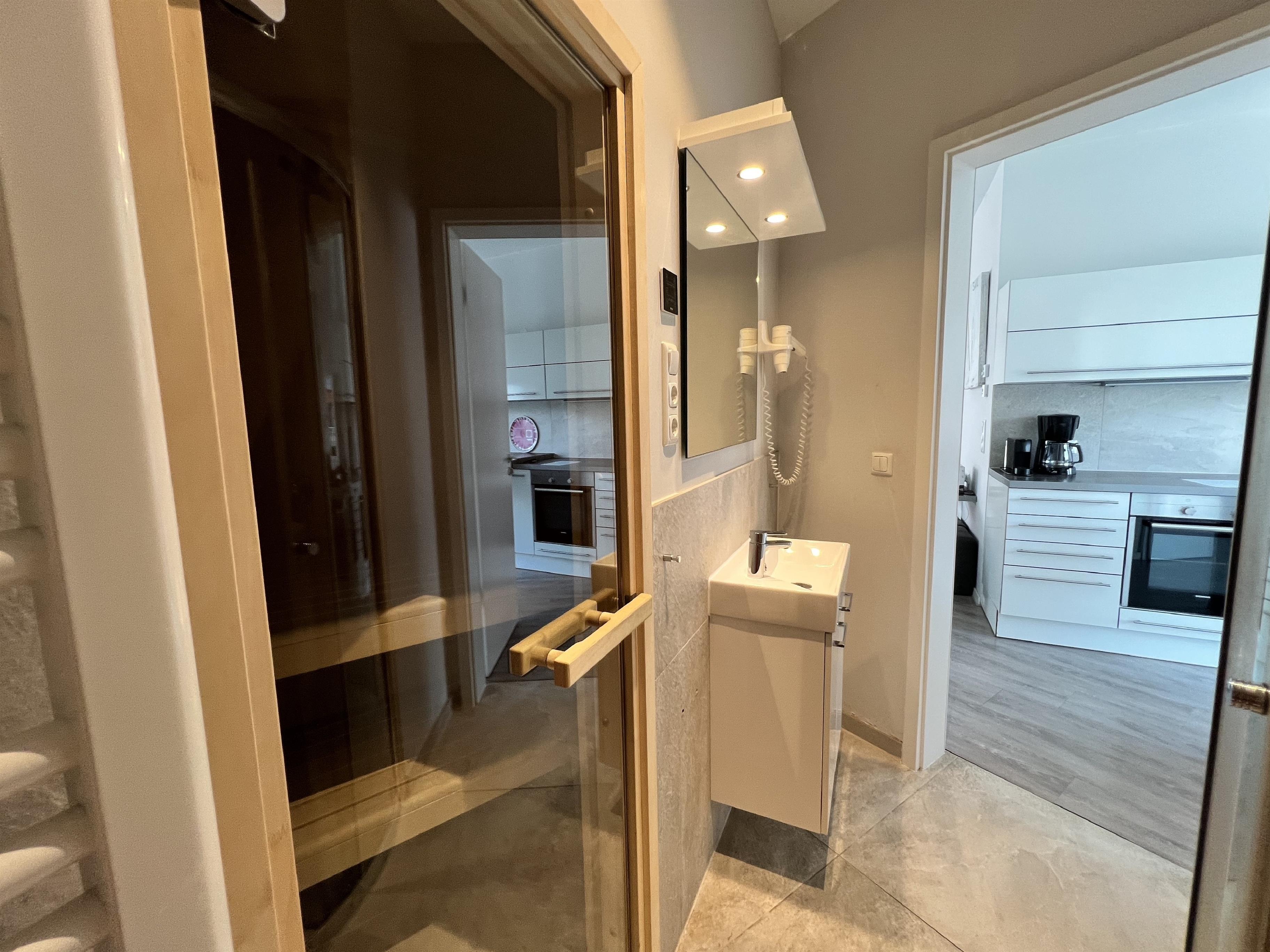 Die Wohnung ist stilvoll, hochwertig und modern eingerichtet. Ein besonderes Highlight ist ihr persönlicher Wellnessbereich mit Sauna, Whirlpool und Dampfbad mit integrierter Doppel-