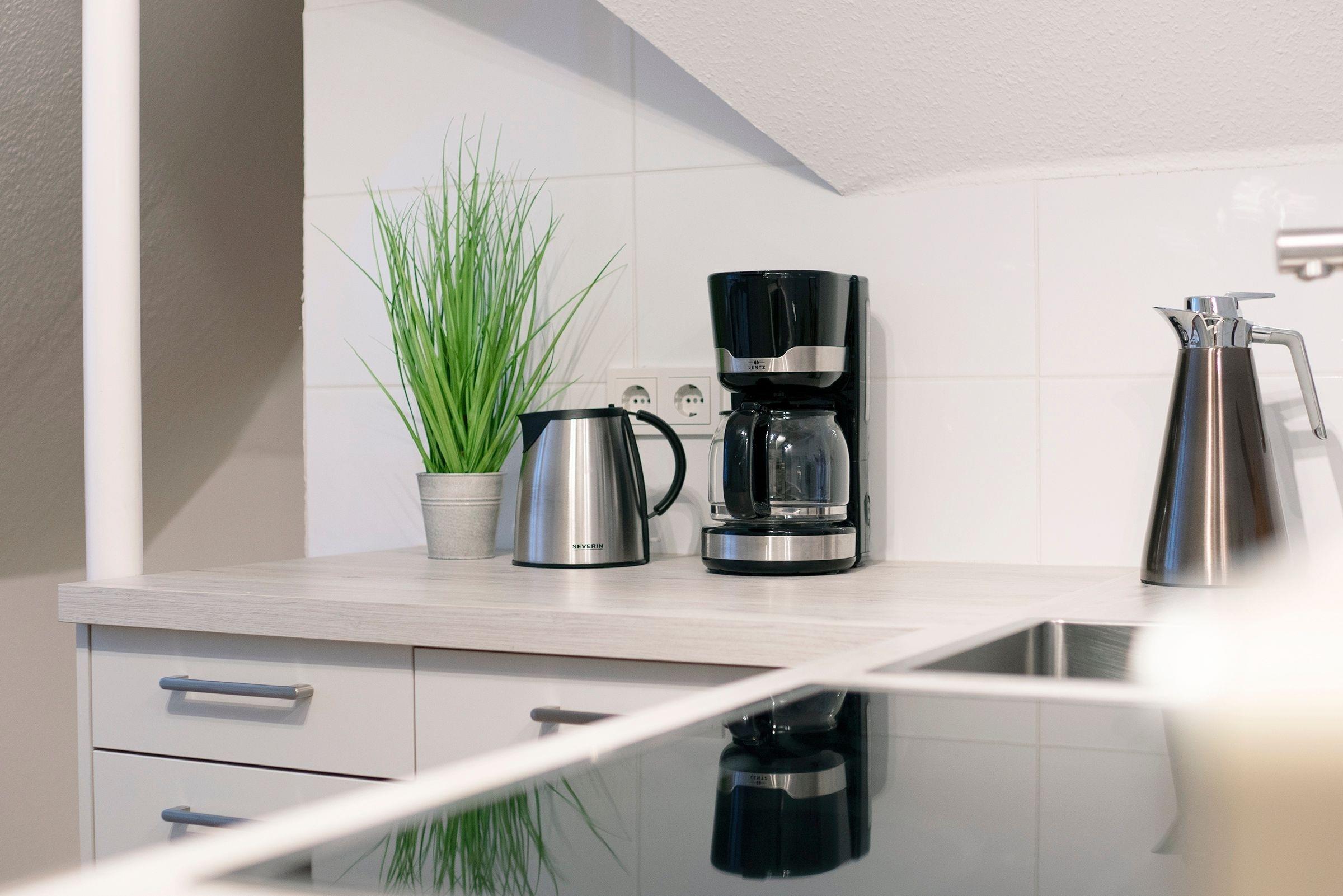 Sehr gemschmackvoll gemacht , schlicht trotzdem gemuetlich. Bus aus Salz und Pfeffer wirklich alles mitzubringen, kaffe Filter, Zucker etc