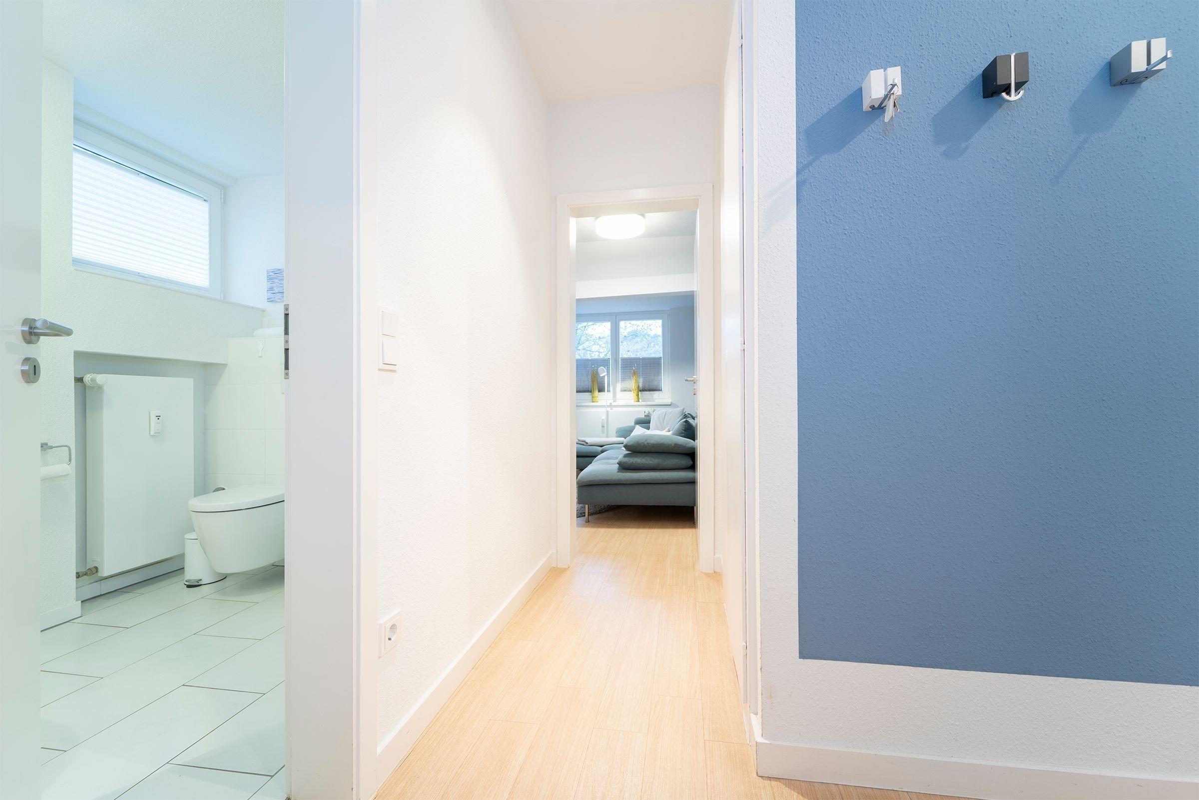 Schon das Treppenhaus verströmt den Flair dieser wunderschönen Immobilie. Mit betreten des Feriendomizils können Sie vom ersten Moment an den Alltag hinter sich lassen und sich endlich entspannen. Ein geräumiger Flur empfängt Sie.