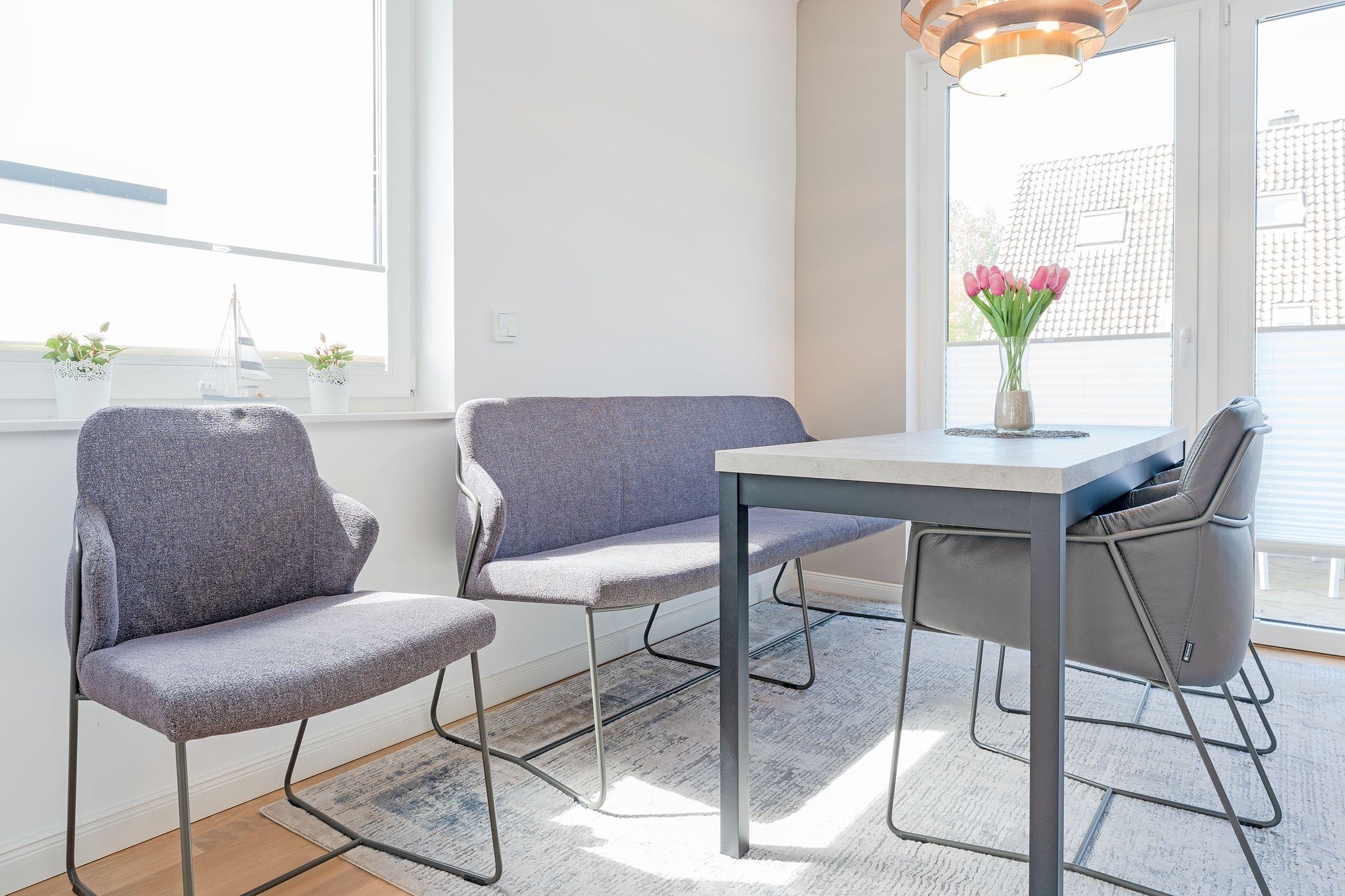 Eine perfekte Mischung: Wunderschöne Strände und eine unberührte Natur sowie eine schicke Uferpromenade zum Flanieren zeichnen den Priwall aus. Und auch die Fähre, die Sie nach Travemünde bringt, ist nicht weit von Ihrem Feriendomizil entfernt. Mit dem Fahrstuhl erreichen Sie die zauberhafte Ferienwohnung Priwalk Vacation. Der lichtdurchflutete Wohnbereich mit den bodentiefen Fenstern empfängt Sie mit einer kuscheligen Sofalandschaft und einem Smart TV mit Bluetooth Box – hier finden Sie, je nach Bedarf, herrliche Entspannung oder auch spannende Unterhaltung. Die helle, moderne Küche ist in den Wohnraum integriert und gestaltet Ihren Urlaub durch die gute Ausstattung mit Espressomaschine und Geschirrspüler wunderbar angenehm. Bereiten Sie hier Ihre Lieblingsspeisen zu und genießen Sie diese in der netten Essecke an der großen Fensterfront, wo Sie auch Zutritt auf den möblierten Balkon haben. Hier draußen an der schönen Ostseeluft finden Sie eine Menge Platz zum Erholen – sicher ein Highlight der Wohnung. Für die Nacht stehen Ihnen mehrere Schlafmöglichkeiten zur Verfügung: In einem Schlafzimmer finden Sie ein Doppelboxspringbett (180x200 cm) sowie genügend Platz, um ein Kinderreisebett aufzustellen. Dazu ein Bad en Suite. In dem anderen Schlafzimmer steht ein Doppelboxspringbett (2x 90x200 cm). Zudem lässt sich das Sofa im Wohnzimmer in ein Bett (ca. 140x270 cm) verwandeln. Das Badezimmer ist modern eingerichtet und verfügt über eine bodengleiche Duschen sowie einen Handtuchwärmer. Praktisch: Im Flur steht für Sie ein Waschtrockner bereit. Eine Fußbodenheizung in der gesamten Wohnung sowie Außenjalousien sorgen insgesamt für angenehmen Komfort.