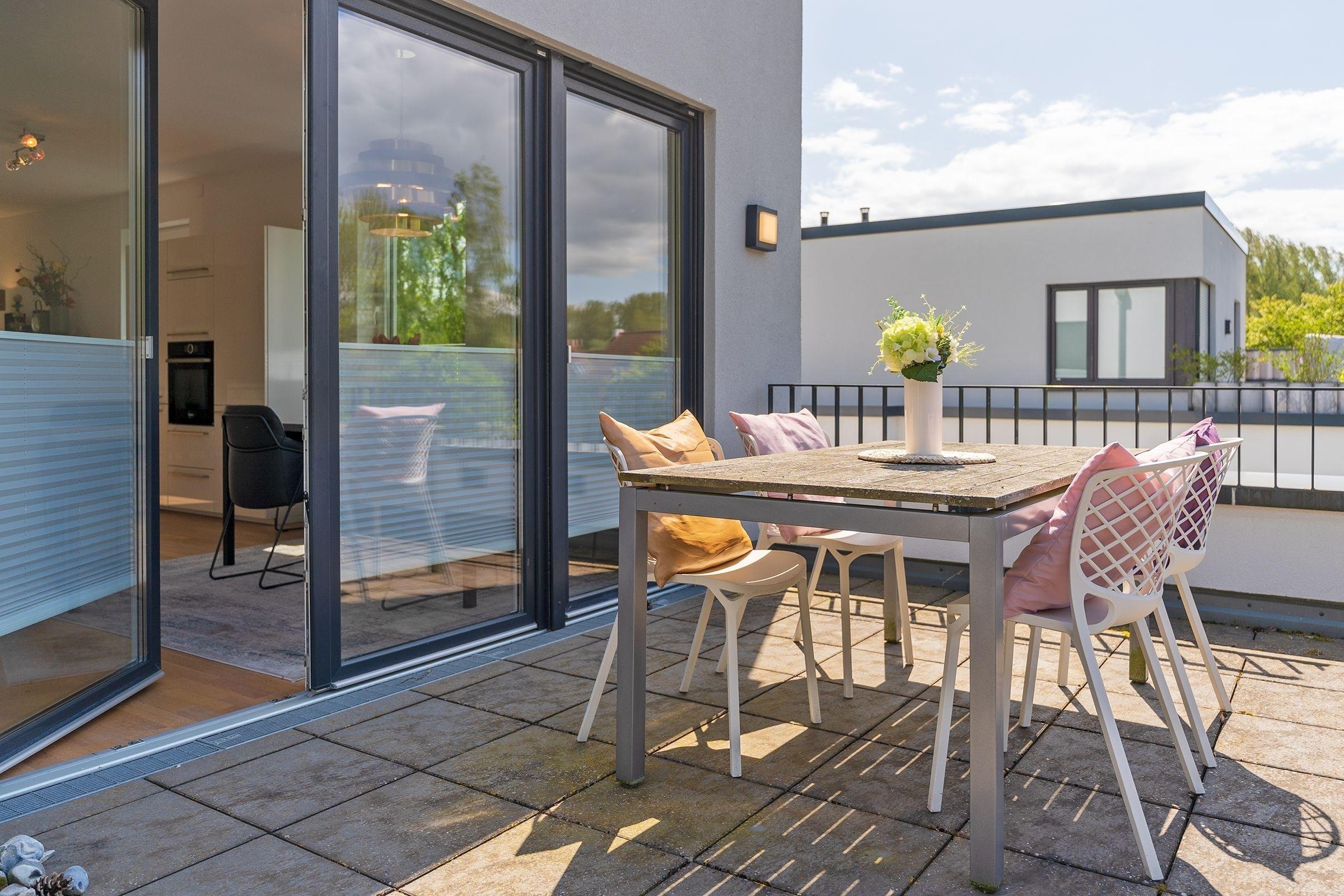 Moderne Ferienwohnung mit Dachterrasse und Meerblick auf dem Priwall in Travemünde.