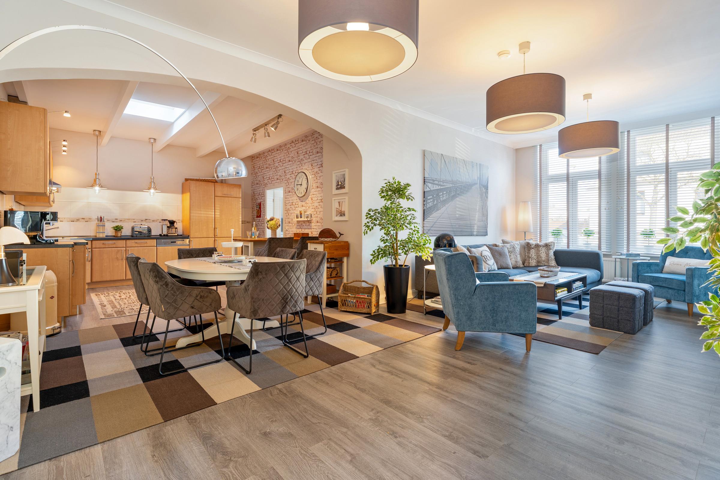Großzügige 4-Zimmer-Ferienwohnung in Travemünde mit 160 m² Wohnfläche für bis zu 6 Personen – ideal für Familien oder einen entspannten Urlaub mit Freunden an der Ostsee.
