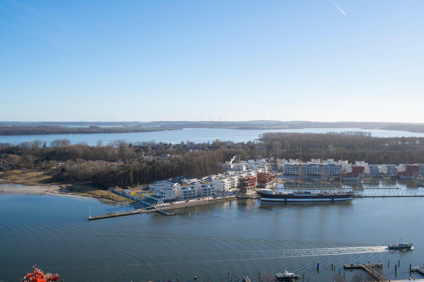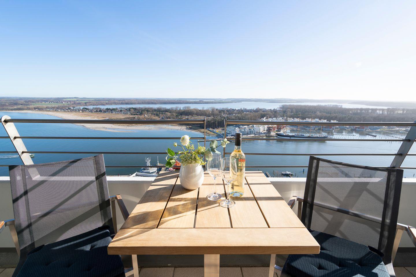 Diese Aussicht ist einfach "WOW!" und dazu wohnt ihr noch strandnah in einer 2022 erst hochwertig renovierten 2-Zimmer-Ferienwohnung in der 24. Etage des Maritim-Residenz-Appartementhauses in Travemünde.