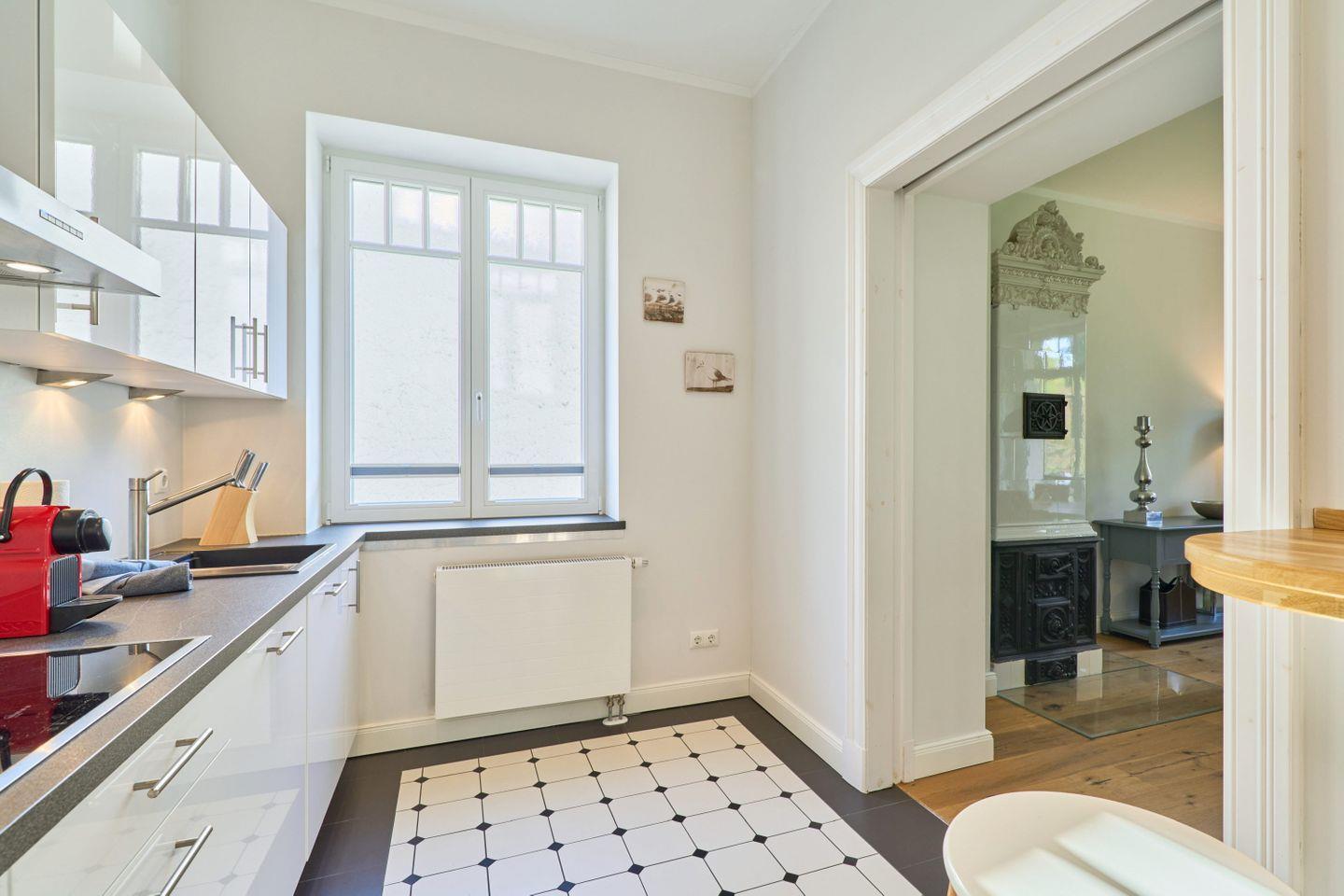 Villa Daheim Travemünde – Luxus pur in der Kaiserallee. Auf 105 m² bietet die Ferienwohnung Villa Daheim alles, was man sich für einen entspannten Urlaub an der Ostsee wünscht. Die luxuriöse Ferienwohnung liegt in der ruhigen zweiten Reihe an der Kaiserallee, nur 50 m vom Ostseestrand entfernt. Das Zentrum von Travemünde ist in etwa 15 Gehminuten über die Promenade erreichbar. Die Wohnung befindet sich in einer stilvollen Bäderstil-Villa, die kürzlich kernsaniert und modern eingerichtet wurde. Mit drei Zimmern, zwei Schlafzimmern, einer großzügigen Veranda und einer voll ausgestatteten Küche bietet die Wohnung Platz für bis zu vier Gäste. Große bodentiefe Fenster im Wohnzimmer sorgen für eine helle Atmosphäre und der Zugang zur sonnigen, südlich ausgerichteten Veranda mit Blick ins Grüne lädt zum Entspannen ein. Ein privater Strandkorb auf der Veranda sowie der Zugang zum Gemeinschaftsgarten sorgen für zusätzliche Erholung. In beiden Schlafzimmern stehen komfortable Boxspring-Doppelbetten und ausreichend Stauraum in den Kleiderschränken zur Verfügung. Das Badezimmer bietet eine Badewanne, Dusche und WC. Eine Waschmaschine zur freien Nutzung befindet sich im Waschkeller. Für Unterhaltung sorgen ein großer LED-TV mit Kabelanschluss im Wohnzimmer, ein weiterer TV im Schlafzimmer sowie eine Stereoanlage mit Radio und CD-Funktion. Die geschmackvolle und moderne Einrichtung auf 105 m² lässt keine Wünsche offen. Für Ihren Komfort ist ein privater Stellplatz direkt vor dem Haus vorhanden, und Ihre Fahrräder können sicher und trocken im eigenen Fahrradschuppen untergebracht werden. Villa Daheim in Travemünde bietet Luxus, modernes Ambiente und Altbaucharme in strandnaher Lage an der Kaiserallee und ist die perfekte Unterkunft für einen unvergesslichen Ostseeurlaub.