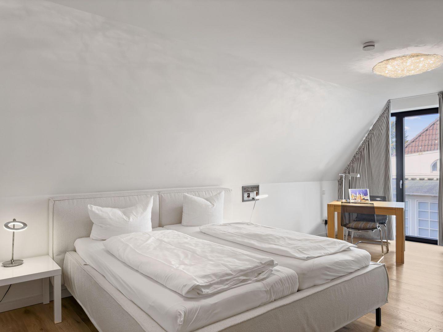 Dieses barrierefreie 3-Zimmer-Apartment im 2. OG bietet auf ca. 130 m² modernen Komfort und großzügigen Platz für Ihren Aufenthalt. Die Wohnung verfügt über ein Vollbad mit Dusche und Sauna sowie ein zusätzliches barrierefreies Duschbad und ein Gäste-WC. Zwei Schlafzimmer mit Doppelbetten und TV bieten eine erholsame Nachtruhe. Die gut ausgestattete Einbauküche mit separatem Essplatz lädt zum Kochen und Genießen ein. Der Wohnbereich mit Wintergarten lässt sich bei schönem Wetter öffnen und bietet zusätzlich Platz zum Entspannen. Für Unterhaltung sorgen TV, Musikanlage und WLAN. Ein Waschtrockner sowie ein Kinderbett und Hochstuhl sind ebenfalls vorhanden. Ein Tiefgaragenstellplatz rundet das Angebot ab. Direkt im Zentrum gelegen, genießen Sie hier die Nähe zu allen Bäckern, Geschäften und Restaurants.