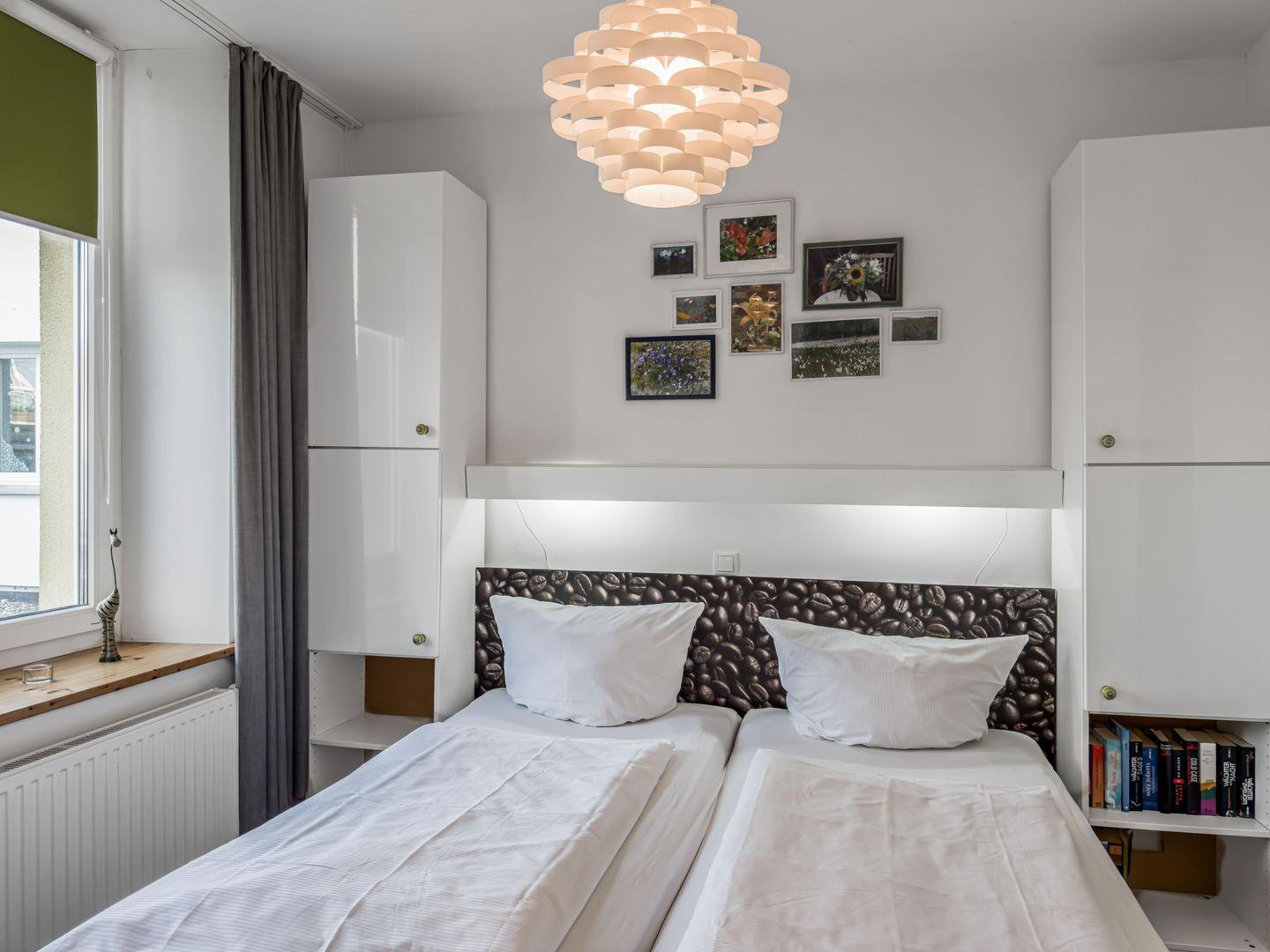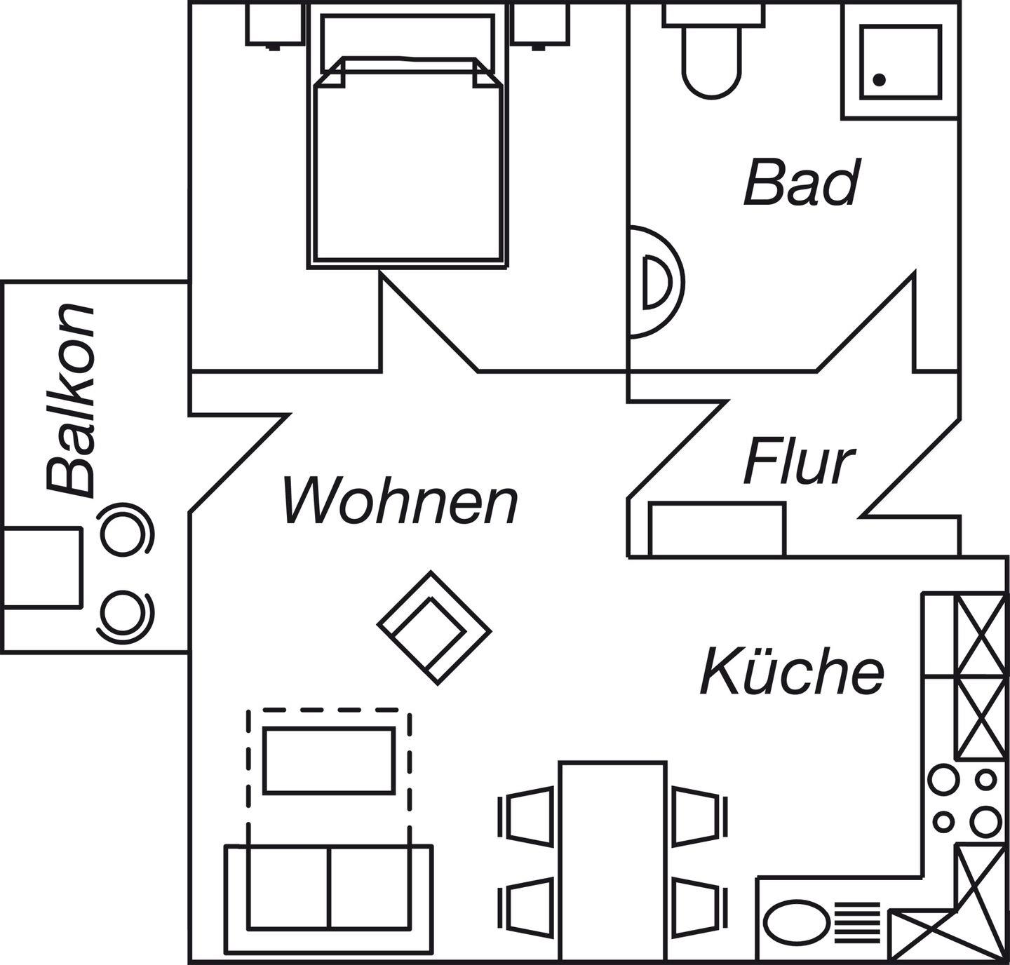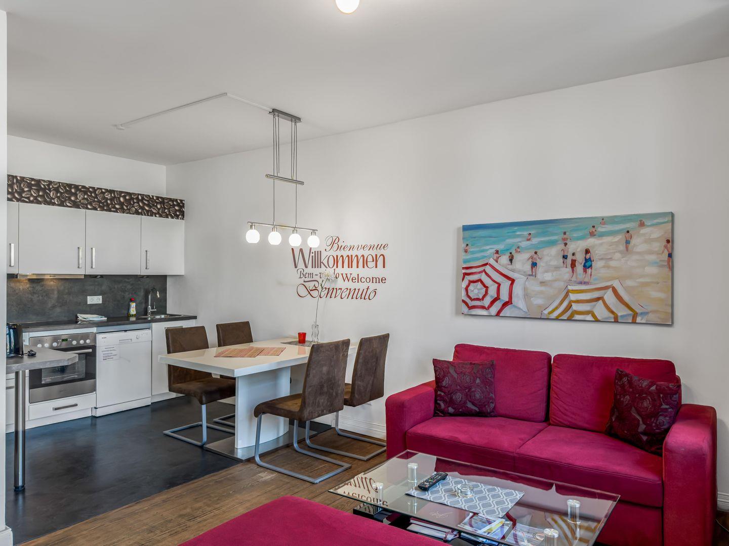 Dieses hübsch möblierte 2-Zimmer-Apartment im 1. Obergeschoss bietet Ihnen auf ca. 42 m² einen komfortablen Aufenthalt im Herzen der Stadt. Mit einem separaten Schlafzimmer mit Doppelbett und einem gemütlichen Wohnzimmer, das auch eine Schlafcouch für eine dritte Person bietet, ist das Apartment ideal für Paare oder kleine Familien. Die gut ausgestattete Einbauküche und der sonnige Südwestbalkon laden zum Verweilen ein. TV, WLAN sowie Kinderreisebett und Hochstuhl sind ebenfalls vorhanden – perfekt für einen entspannten Urlaub im Zentrum.